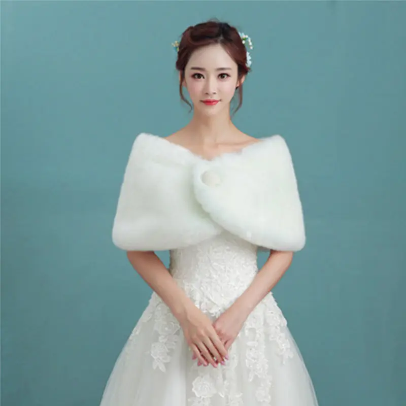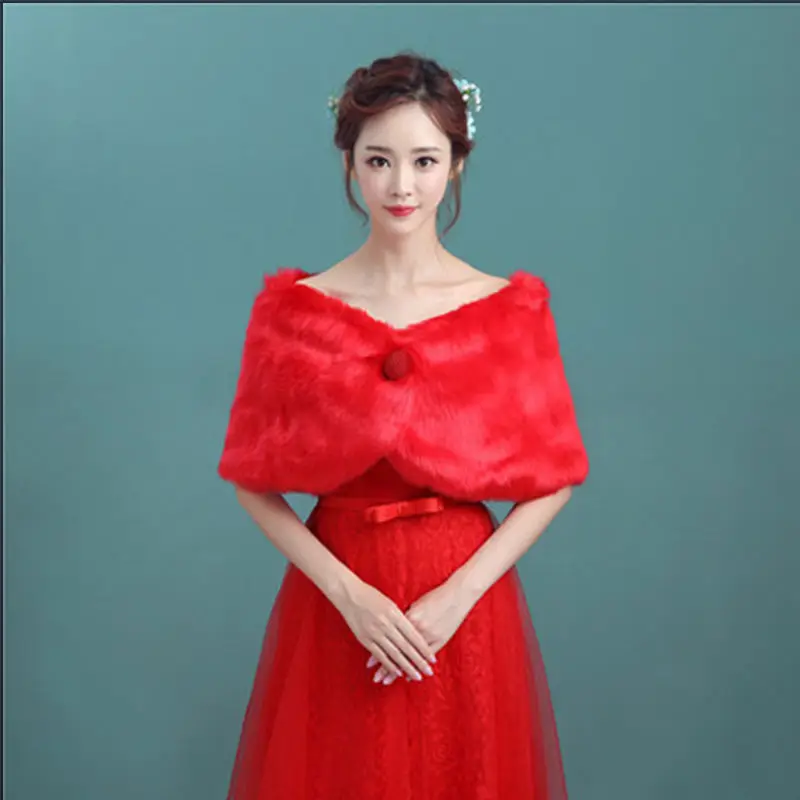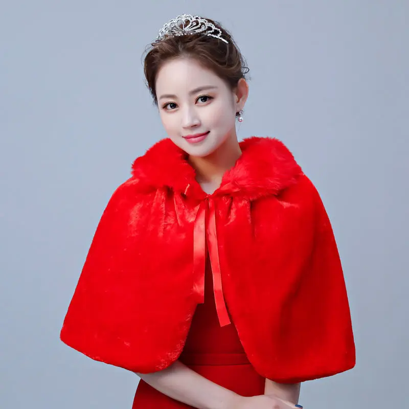 Новинка, Красная Зимняя шаль из искусственного меха для свадебного платья, обогревающая Женская шаль для невесты и подружки невесты с ленточным накидкой