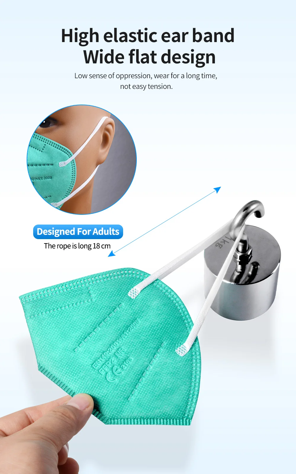 Особенности:Материал:Изготовлен из высококачественного материала, приятного для кожи, дышащего.Дышащие:Регулируемые зажимы для носа обеспечивают плотное уплотнение.Хорошее качество:Полностью герметичный для лучшей защиты. Дышащие и удобные в носке.Удобно носить:Эластичные ушные петли без давления на уши.Применение:Идеально подходит для повседневного занятия спортом на открытом воздухе, прогулок, пеших прогулок, верховой езды, прогулок, работы, школы и многого другого.Материал:Нетканая ткань + фильтрующий слойСтандарт:GB2626-2006Класс защиты:Маска kn95 ffp2Скорость фильтрации:Больше или равен 95%.Примечания:1) маска может немного отличаться от изображений в некоторых частях, стратуре и цвете и т. д. из-за различного производственного периода и некоторых улучшений, спасибо за ваше понимание.2) смешанные стили в продаваемой упаковке случаются иногда (но все маски имеют одинаковые функции и похожие структуры), спасибо за ваше понимание.5-Слои высокой плотности фильтрации5-ти слойной фильтрации эффективно препятствует воздействию пыли, микробы, изумрудно-зеленый,PM2.5 в воздухе, решить проблемы с дыханием сразу.1. Наружный слой нетканого материалаБлоки летучей пыли и т. Д.2. Высокоэффективный фильтр из хлопкаФильтр больших частиц3. Мелтдутый тканевый фильтр-слойСкорость фильтра больше или равна 95%4. Высокоэффективная мелтдувная фильтровальная тканьФильтр мелких частиц5. Мягкая дышащая тканая тканьЛегкий для дыхания, приятный для кожи1. Нетканые материалы, используемые для изготовления масок, были протестированы для защиты окружающей среды. Цветная Нетканая ткань не содержит загрязнений и токсичных веществ. Однако из-за нежной кожи детей рекомендуется, чтобы люди с аллергией на кожу использовали цветные маски с осторожностью.2. Маски для детей в возрасте от 0 до 5 лет не имеют зажимов для носа. Маски для детей в возрасте 6-12 лет имеют зажимы для носа. Если лицо ребенка маленькое, рекомендуется отрегулировать ремешки уха, чтобы контролировать, насколько хорошо маска подходит для лица.3. Ввиду небольшой емкости легких детей, детские маски будут чувствовать себя тоньше, чем взрослые маски. Однако количество слоев фильтрации маски соответствует рекламе.
