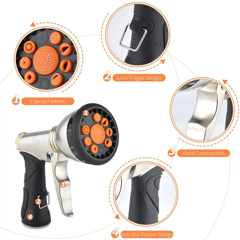 Многофункциональный металлический пистолет-распылитель JINRUI, цинковый сплав, 9 функций, водяной пистолет высокого давления, Amazon, искусственный сад
