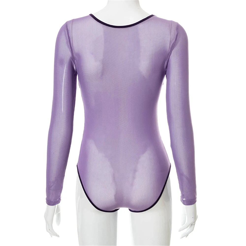 Прозрачное Сетчатое боди с вырезами, женское летнее фиолетовое боди...