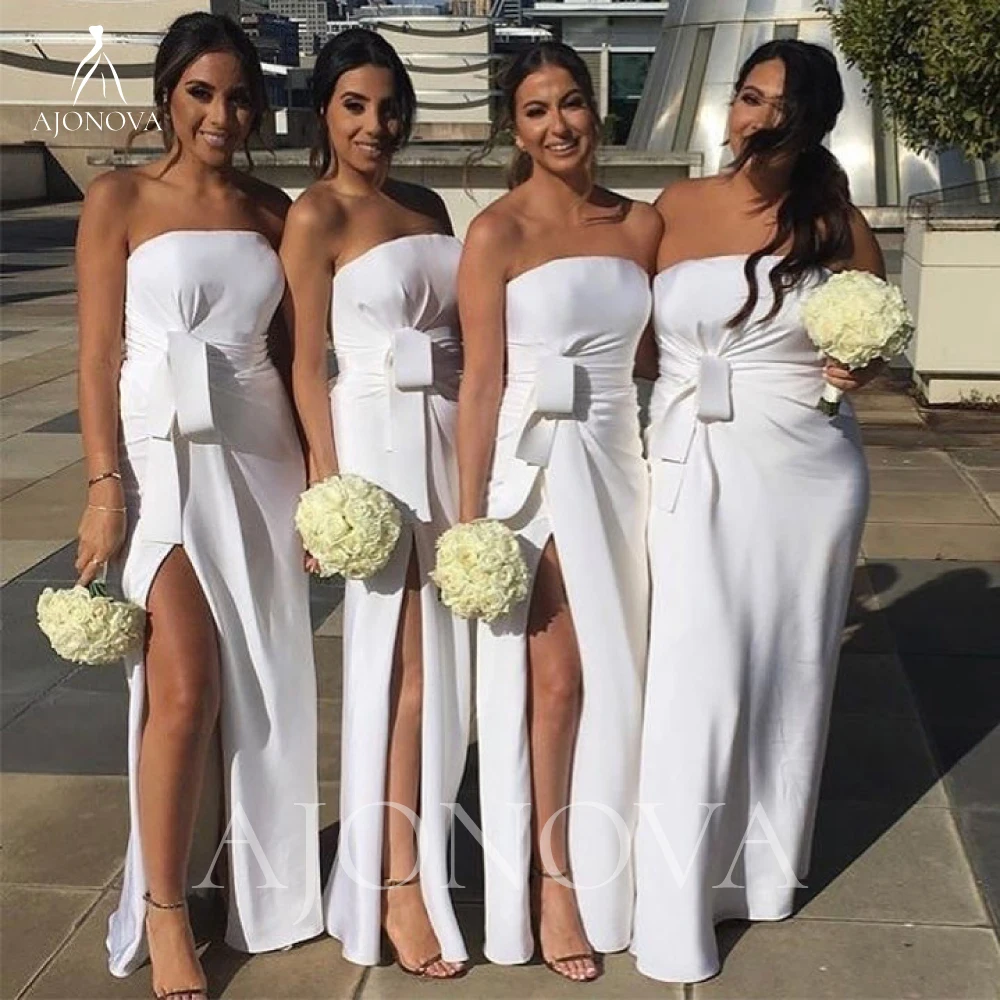 Белое Атласное элегантное платье для женщин для свадебной вечеринки, платье русалки без бретелек, платья подружек невесты, женские вечерние платья 2021