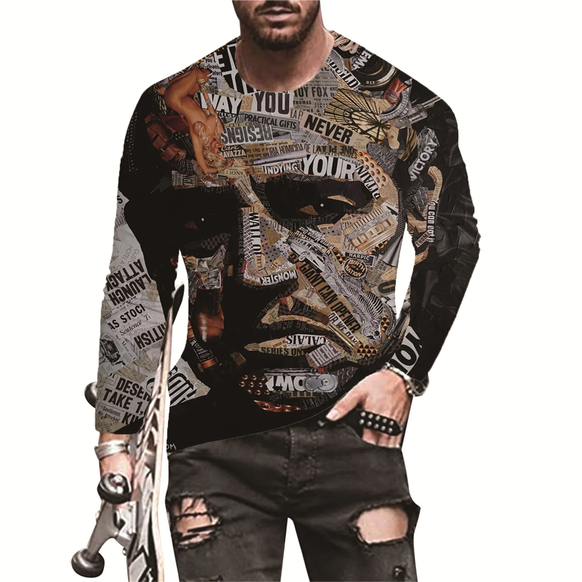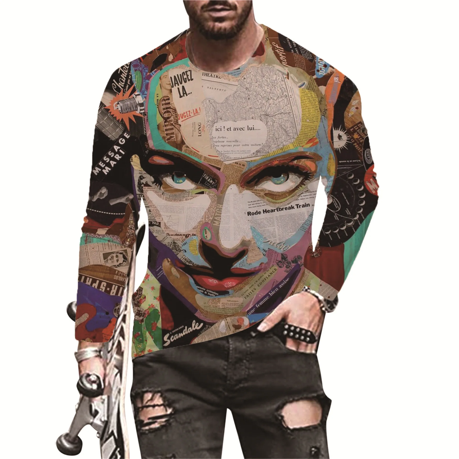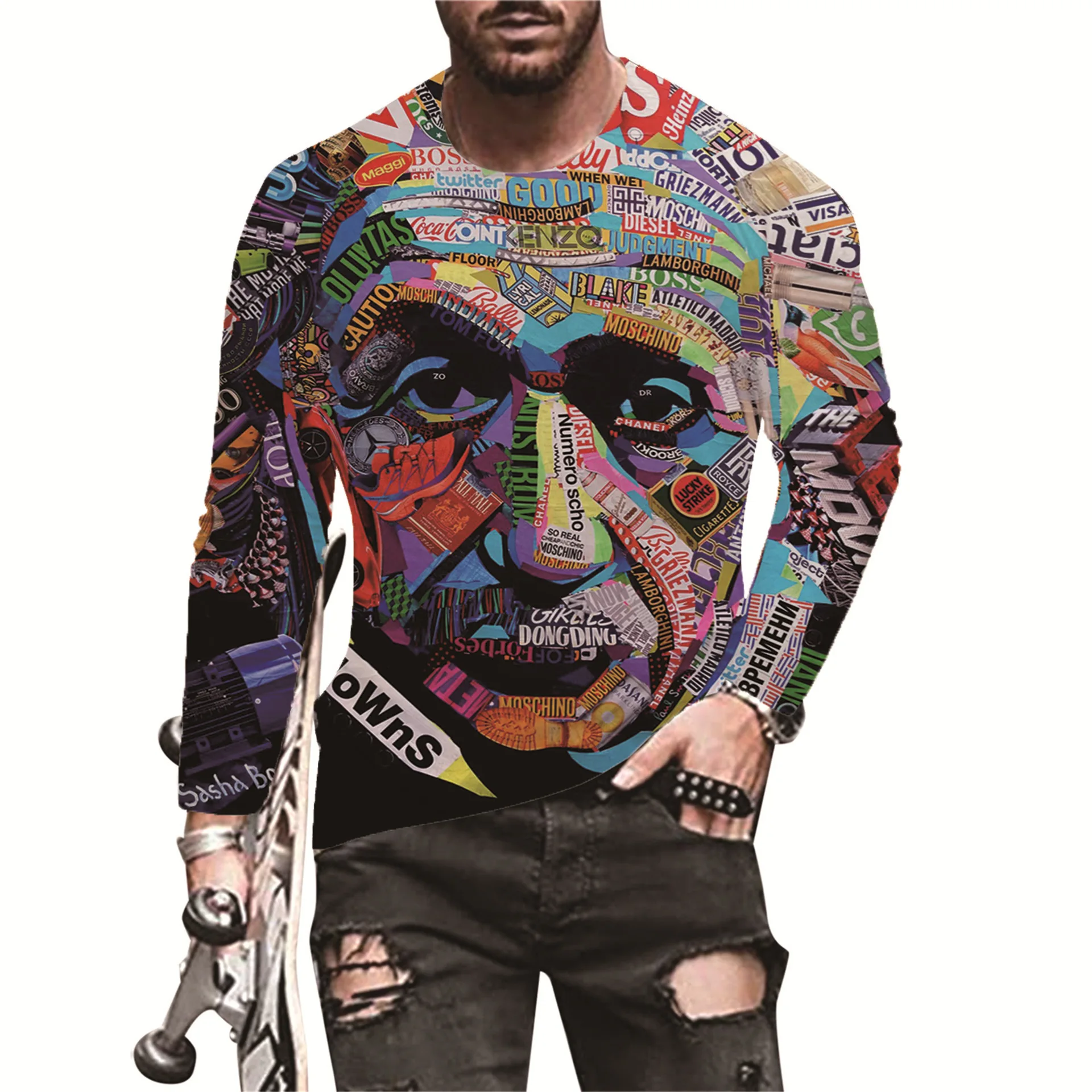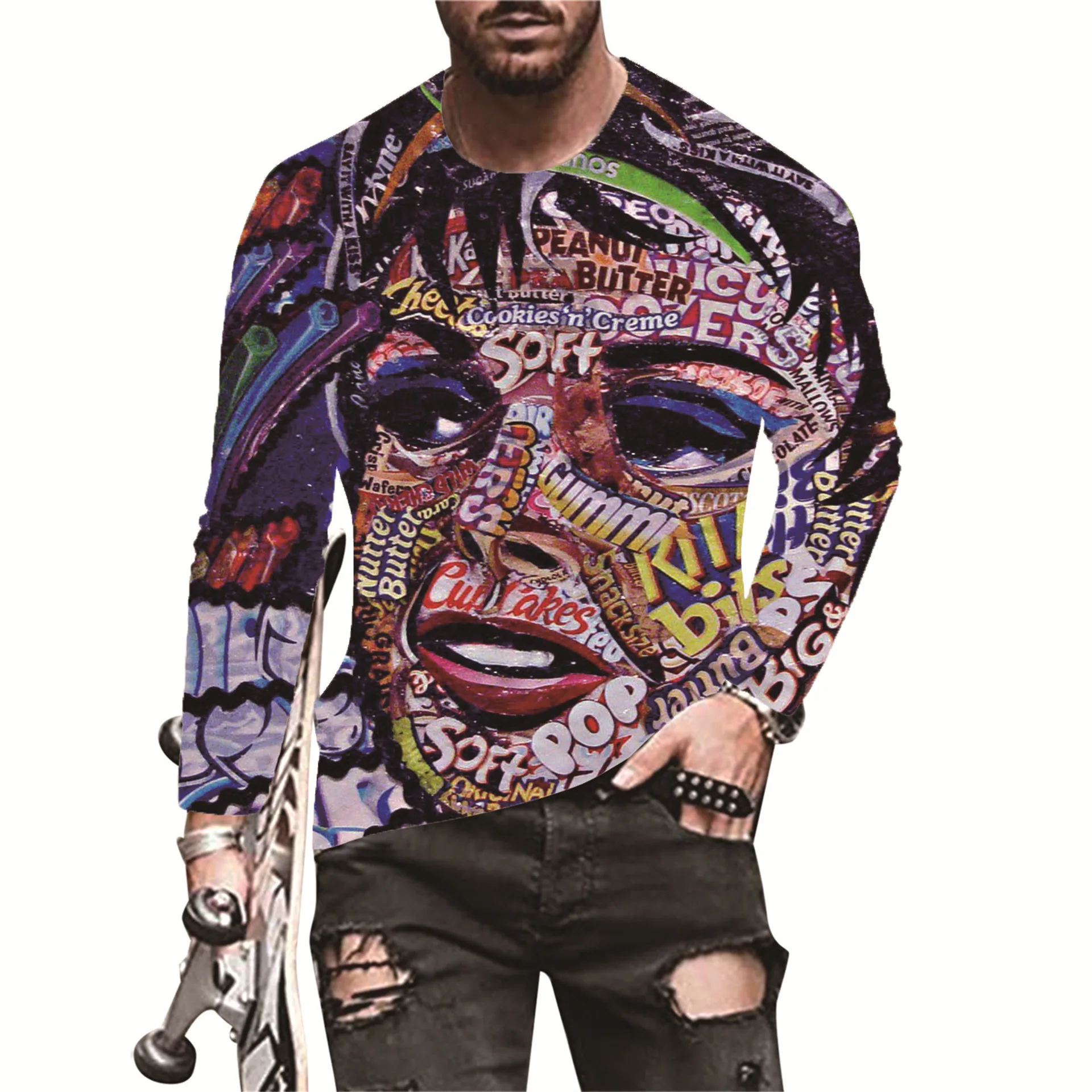 Европейская и американская популярная мужская Спортивная футболка для отдыха с 3D Цифровым принтом уличная трендовая футболка с 3D принтом и длинным рукавом