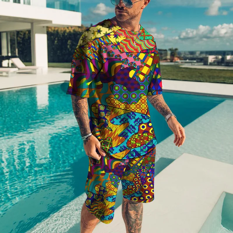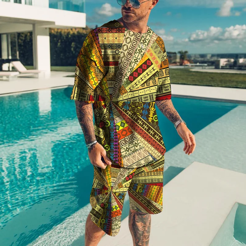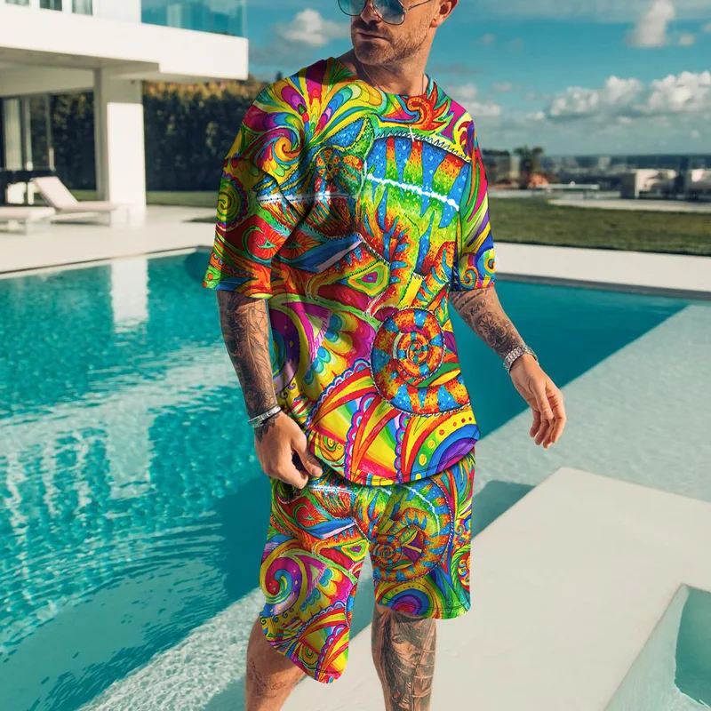 Новый летний уличный Мужской комплект, спортивный костюм для мужчин, одежда больших размеров с 3d принтом, футболка, шорты, спортивная одежда, мужские футболки, модный костюм