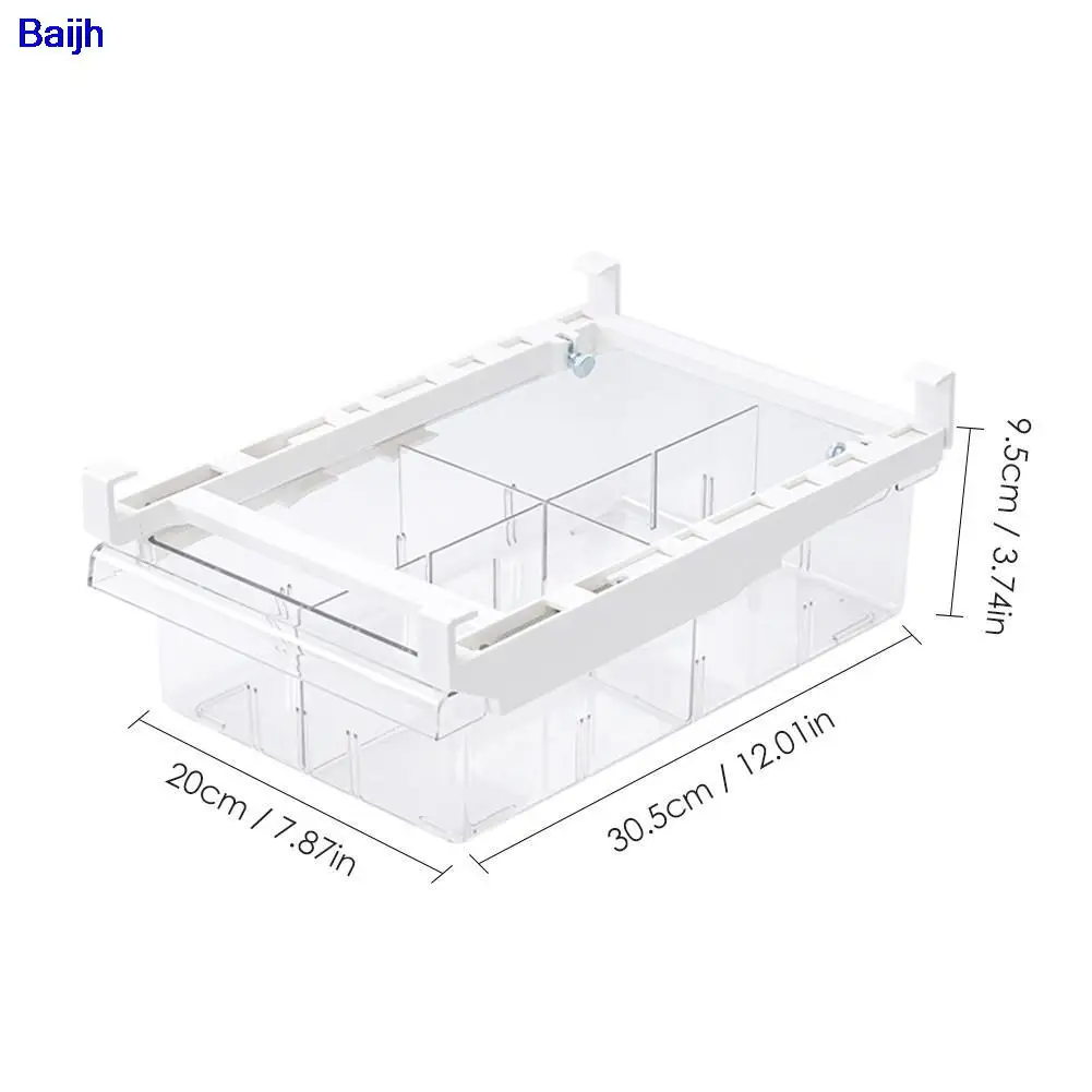 3. Регулируемый: длина направляющей простирается от 11,4 дюймов до 18,5 дюймов. Гладкий рельсовый рельс гарантирует, что ящик может быть легко открыт и закрыт. Органайзер для морозилки подходит для холодильника большинства стандартных размеров