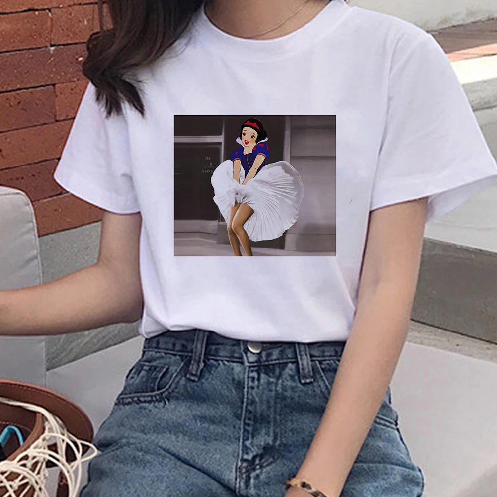 Женская футболка с героями Диснея, футболка с героями мультфильмов ванеллопа вон швейцетца и принцессы, креативная свободная Осенняя футболка с коротким рукавом