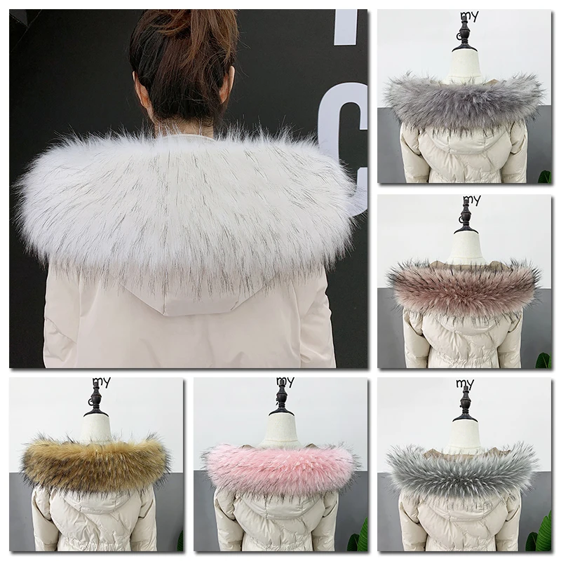 Зимнее теплое пальто, куртка с воротником, женский воротник из искусственного меха енота, Модный меховой шарф, шаль, женские большие меховые шарфы с капюшоном, подарок