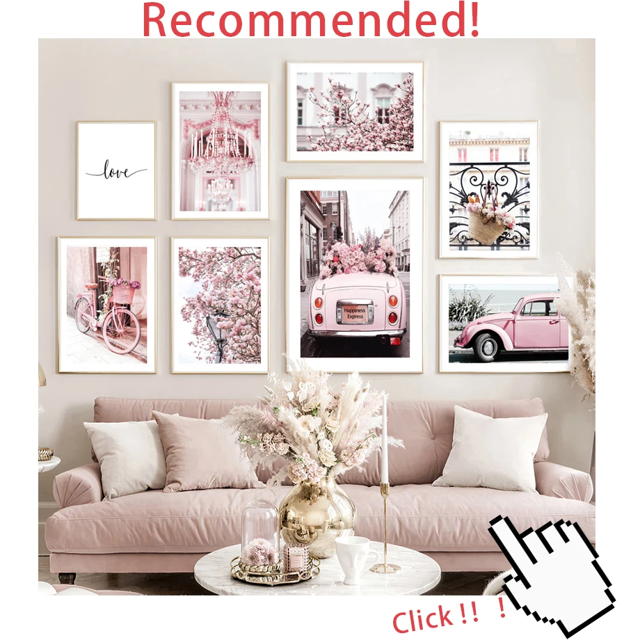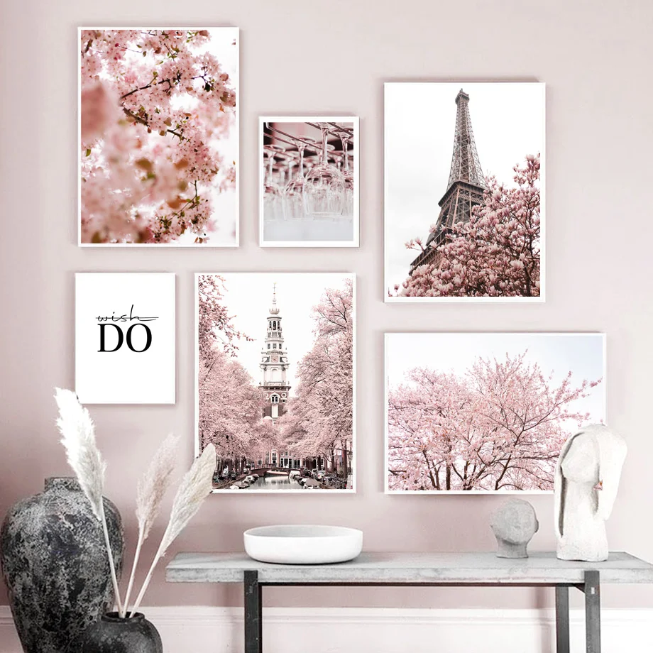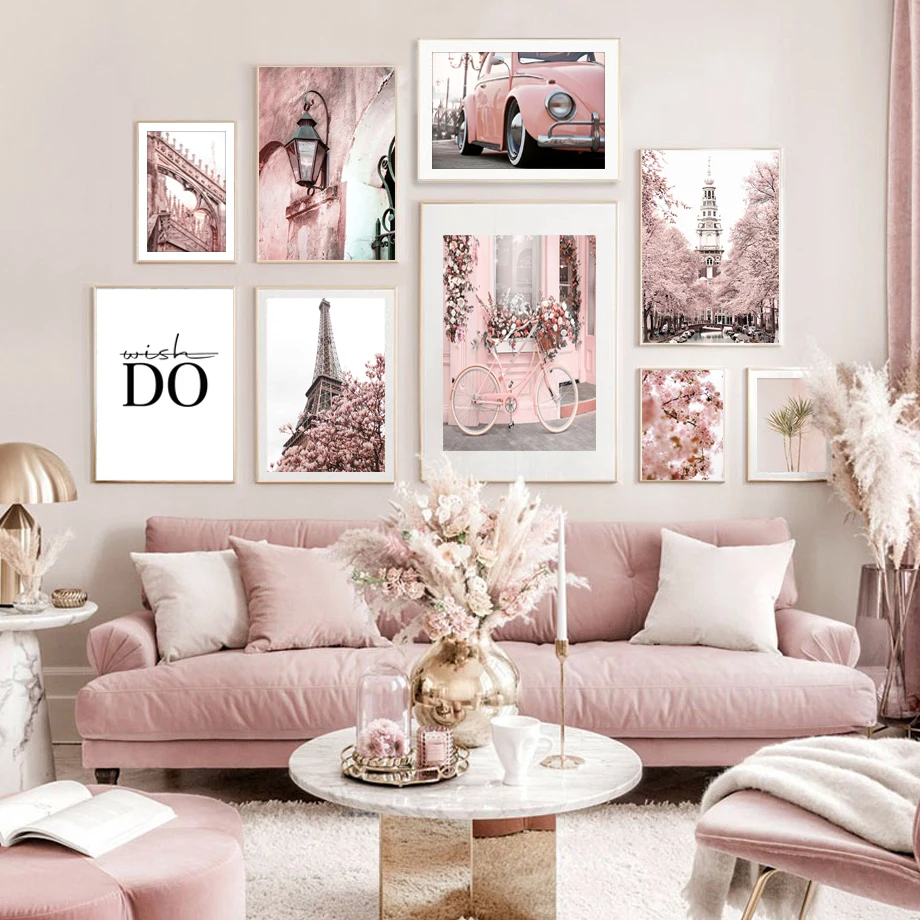 Розовый цветок дерево Ретро велосипед Париж, искусство на стену холст картина скандинавские постеры и принты картинки для декора гостиной