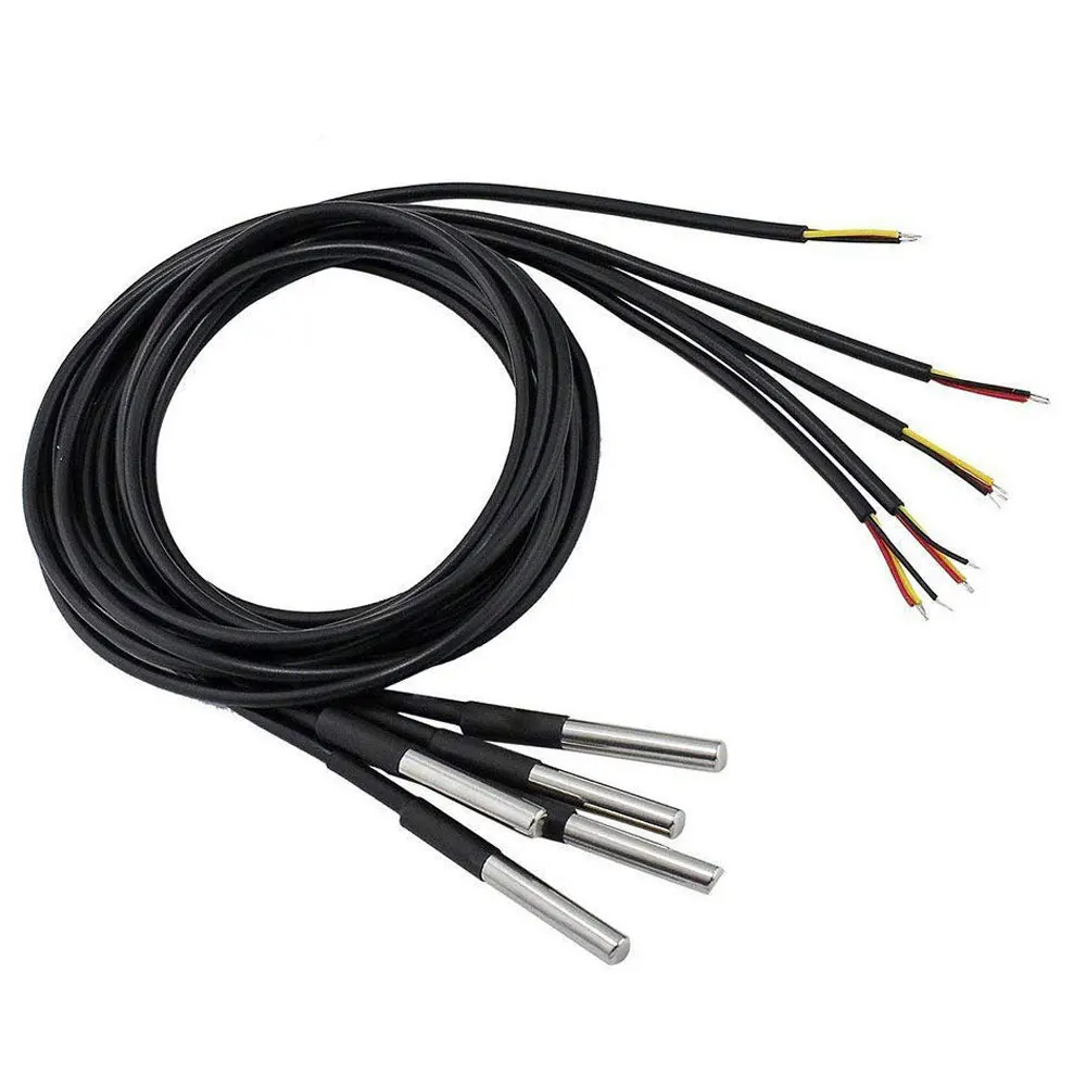 Длина кабеля: 100 см/200 см/300 смРазмер корпуса из нержавеющей стали: 6*50 ммМощность поставить диапазон: 3,0 V до 5,5 VДиапазон рабочих температур: от-55 °C до + 125 °C (от-67 °F до + 257 °F)Диапазон температур хранения: от-55 °C до + 125 °C (от-67 °F до + 257 °F)Точность в диапазоне от-10 °C до + 85 °C: ± 0,5 °C.Выходные провода: желтый (VCC), красный (DATA), черный (GND)
