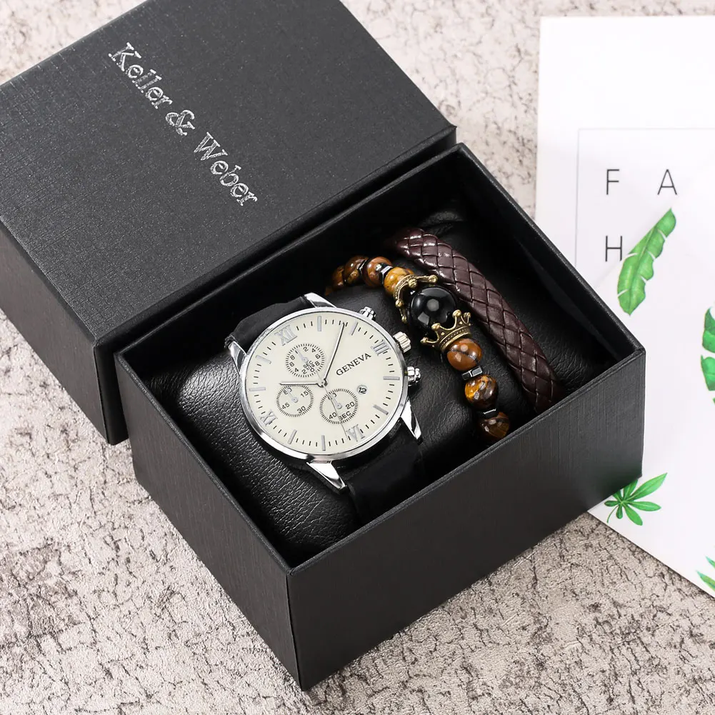 Набор модных мужских часов и браслетов, белый кварцевый Циферблат с...