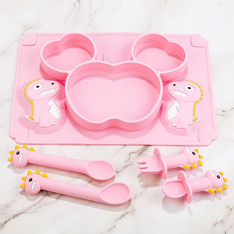 Новая силиконовая миска для кормления ребенка, водонепроницаемая ложка, нескользящая посуда, не содержит Бисфенол А, силиконовые блюда для динозавра, рисунок