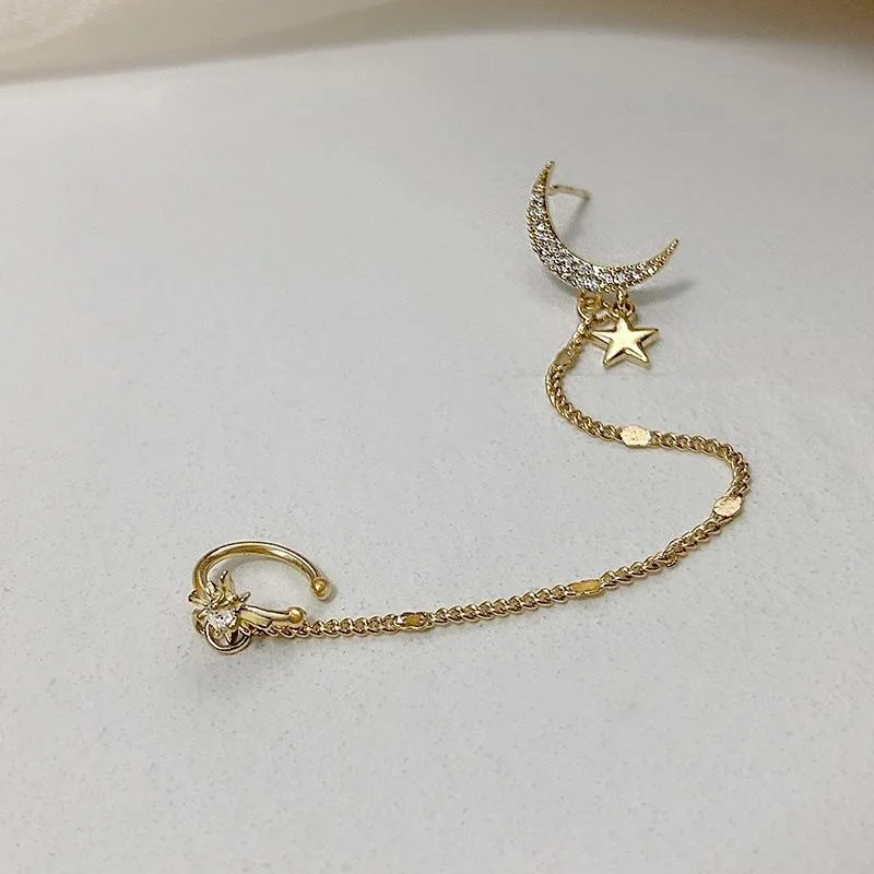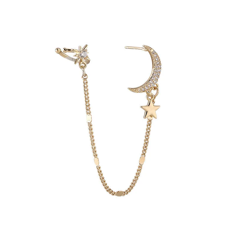 Простые Длинные серьги-цепочки в форме Луны и звезды для женщин, блестящие серьги в форме солнца и полумесяца с геометрической кисточкой для пирсинга