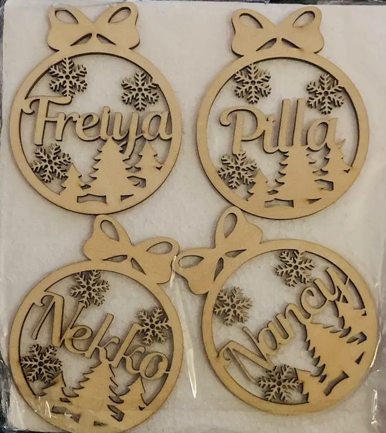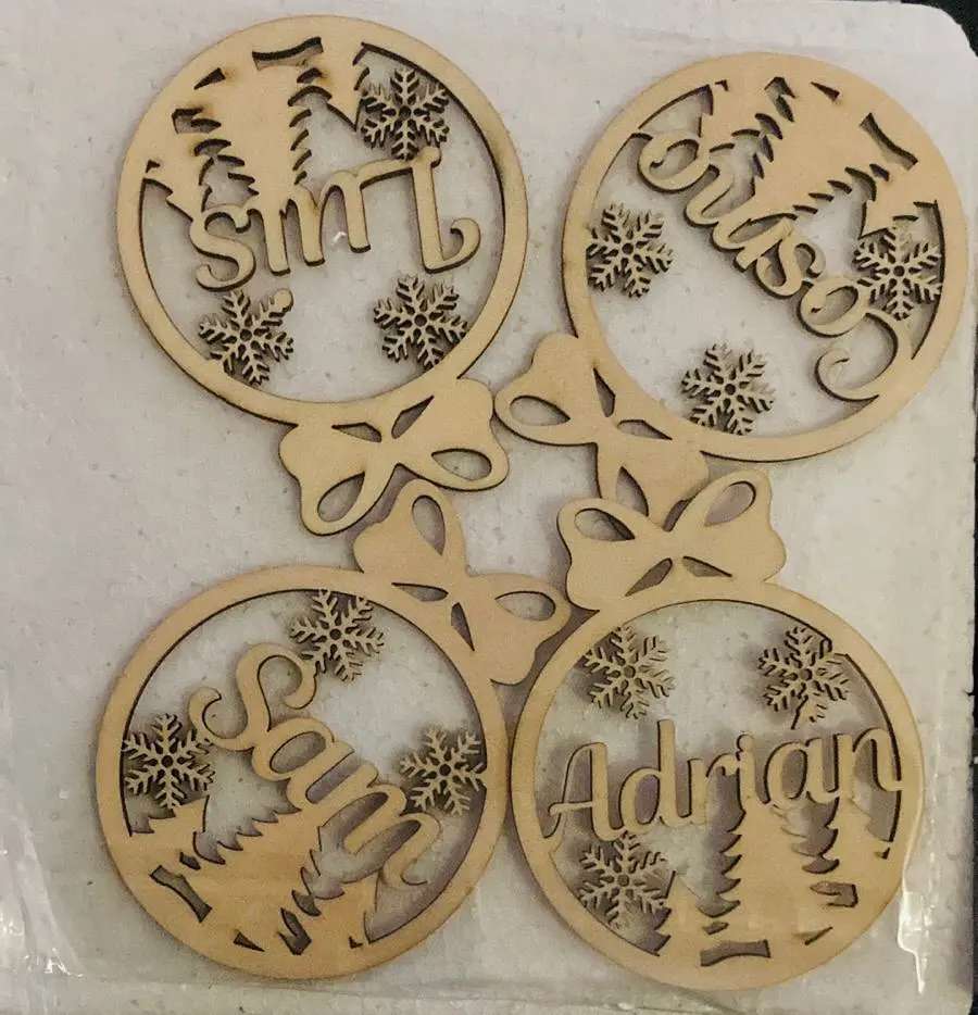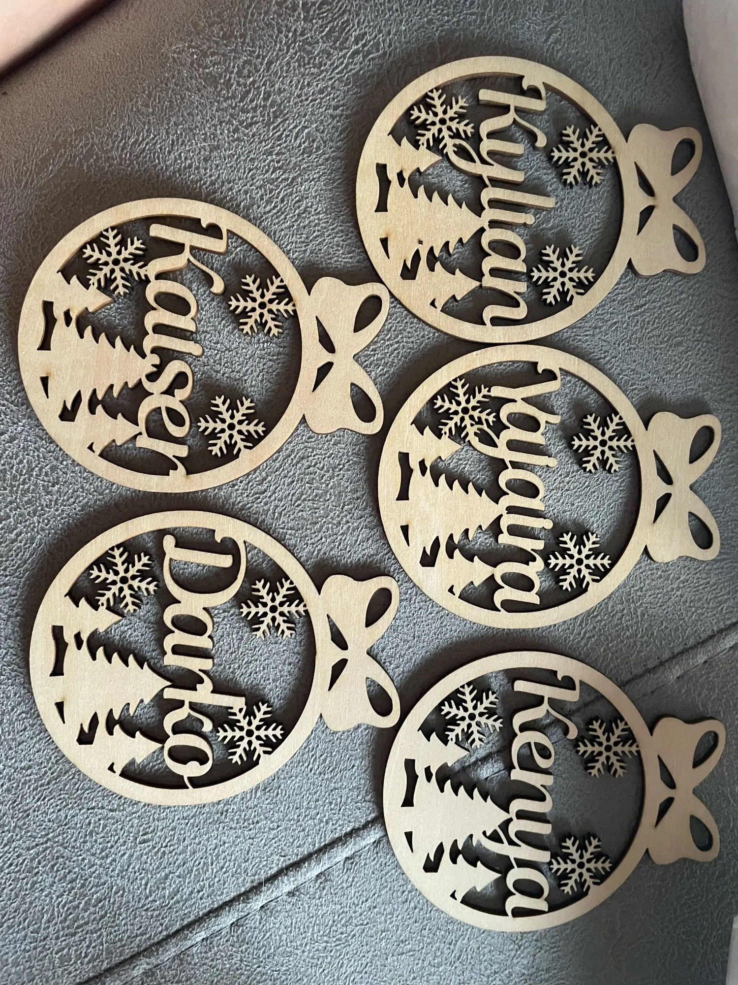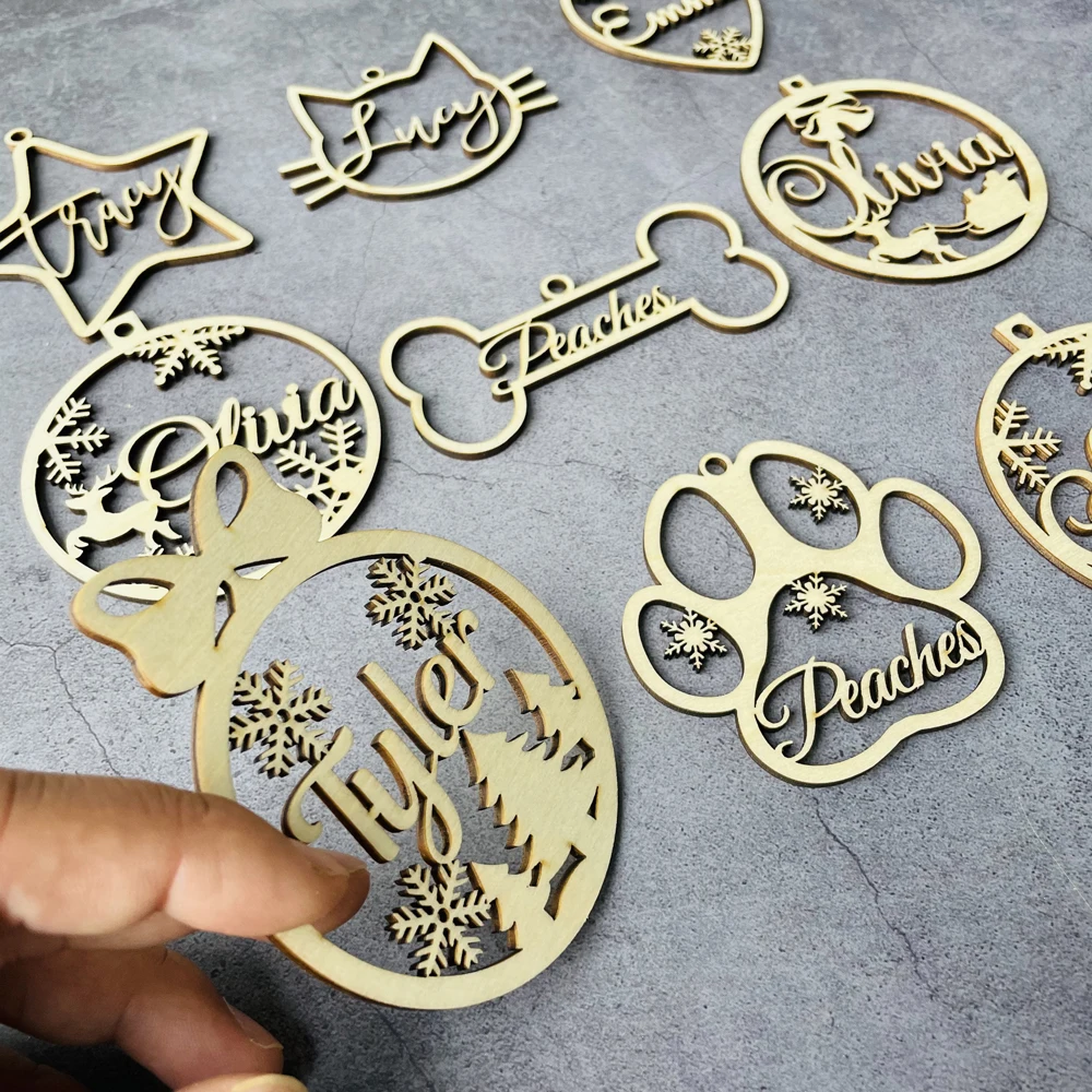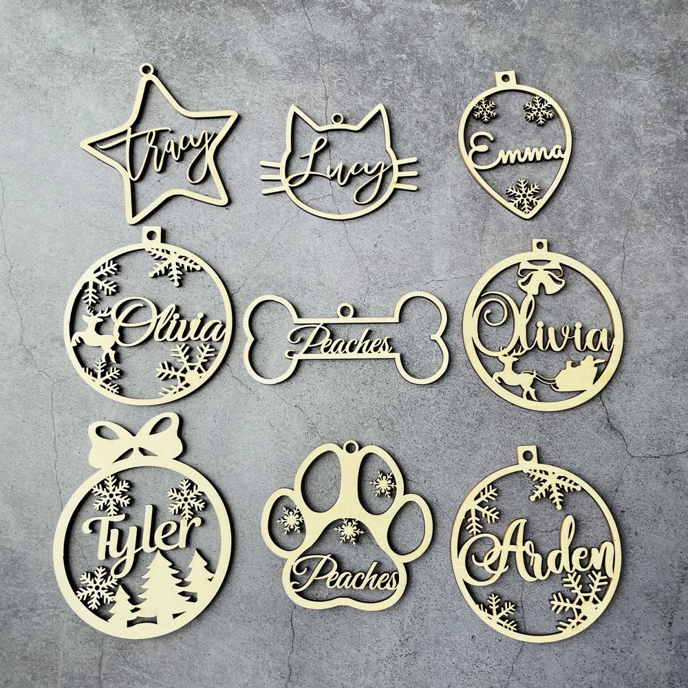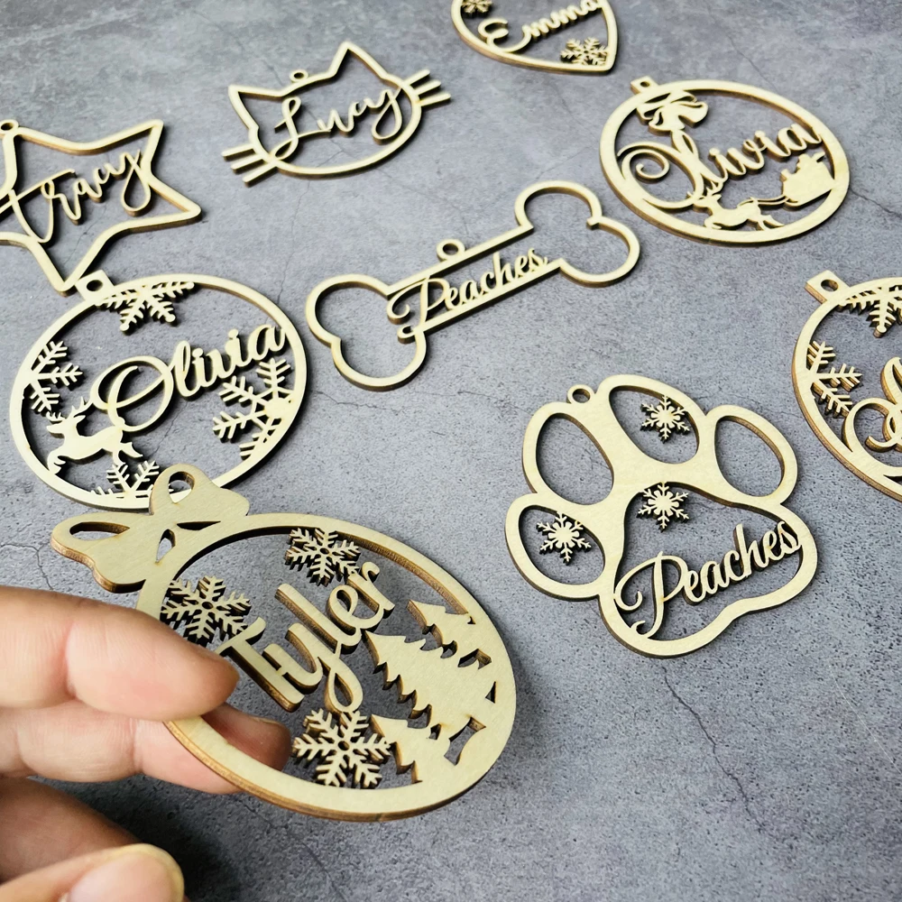Рождественский шар-Снежинка на заказ, персонализированные елочные шары с лазерной резкой, различные именные орнаменты, рождественские подвесные подарочные деревянные бирки на дерево