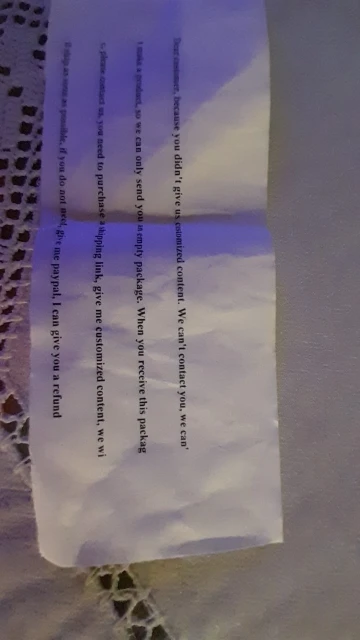 При совершении покупки я попросил разные модели, так как заказал 20 шаров с разными именами. Когда они прислали мне дизайн, они поставили все одинаковые шарики, я снова связался с магазином и снова указал, какую модель я хотел и с каким именем соответствует каждой модели. Они не отправили мне дизайн и отправили первый дизайн, который я сказал, что это не было хорошо. Недоволен плохой связью и дизайном, который я не просил.