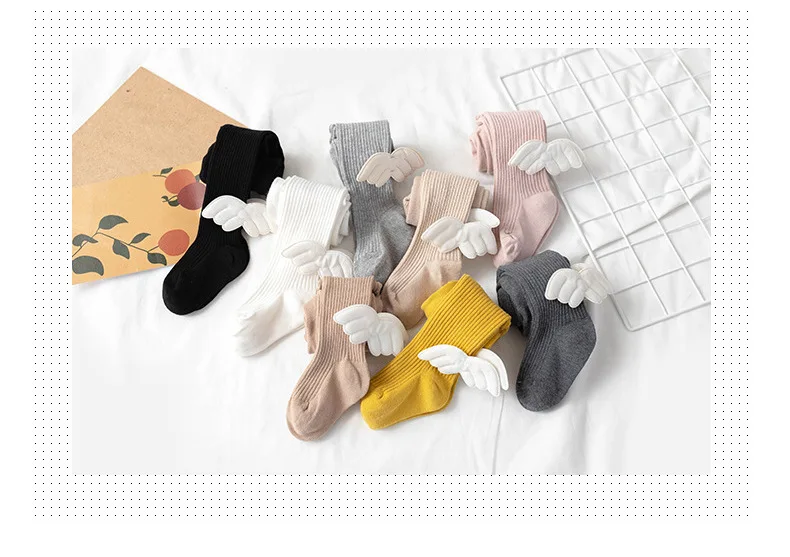 Новинка, модные детские чулки с крыльями ангела для девочек, осенне-весенние мягкие хлопковые детские колготки, вязаные детские колготки для малышей