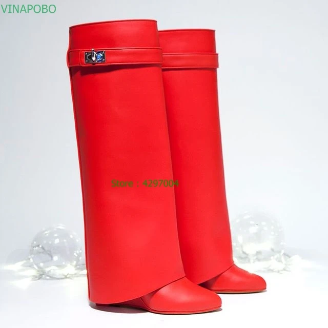 Женские сапоги на танкетке с металлическим замком Акула, ботфорты с...