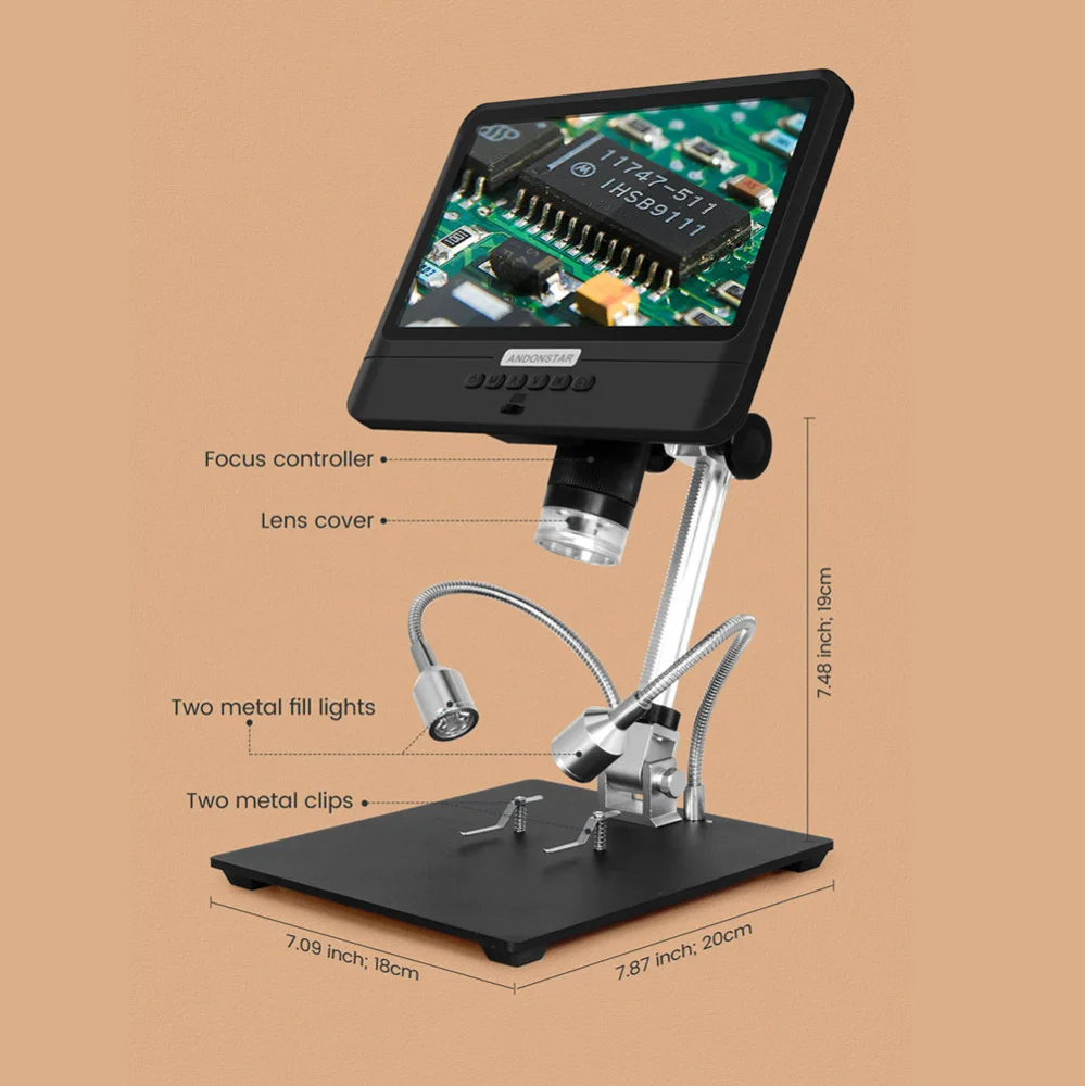 Микроскоп Andonstar AD208, Регулируемый ЖК-дисплей 8,5 дюйма для па...
