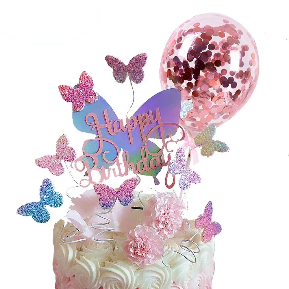 2021, новый Топпер для торта в виде бабочки, розовый, фиолетовый То...