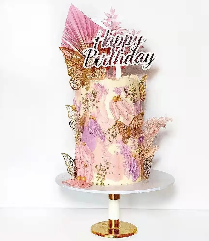 Розовые фиолетовые бабочки украшения для торта хромированные золоты...