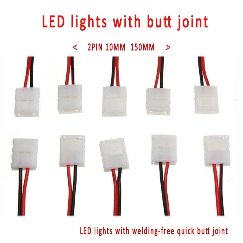 Светодиодный ммные блоки для светодиодной ленты, 2 контакта 10 мм, 150 мм, контакты для проводов, зажимов, клеммы для светодиодов 3528, 5050, 2-контактный разъем постоянного тока