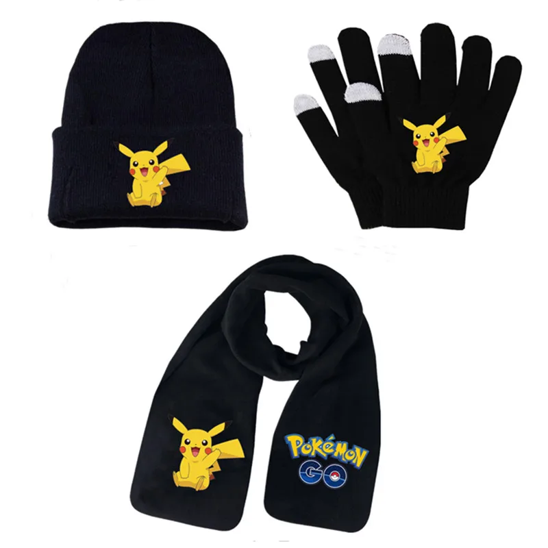 Аксессуары для косплея из аниме Покемон Пикачу с мультяшным принтом шапка шарф перчатки осенне-зимняя шапка теплая вязаная шапка женская