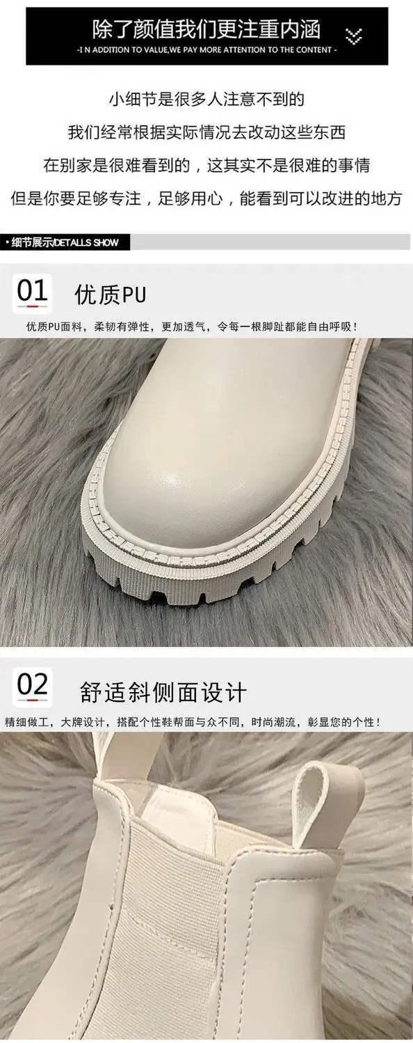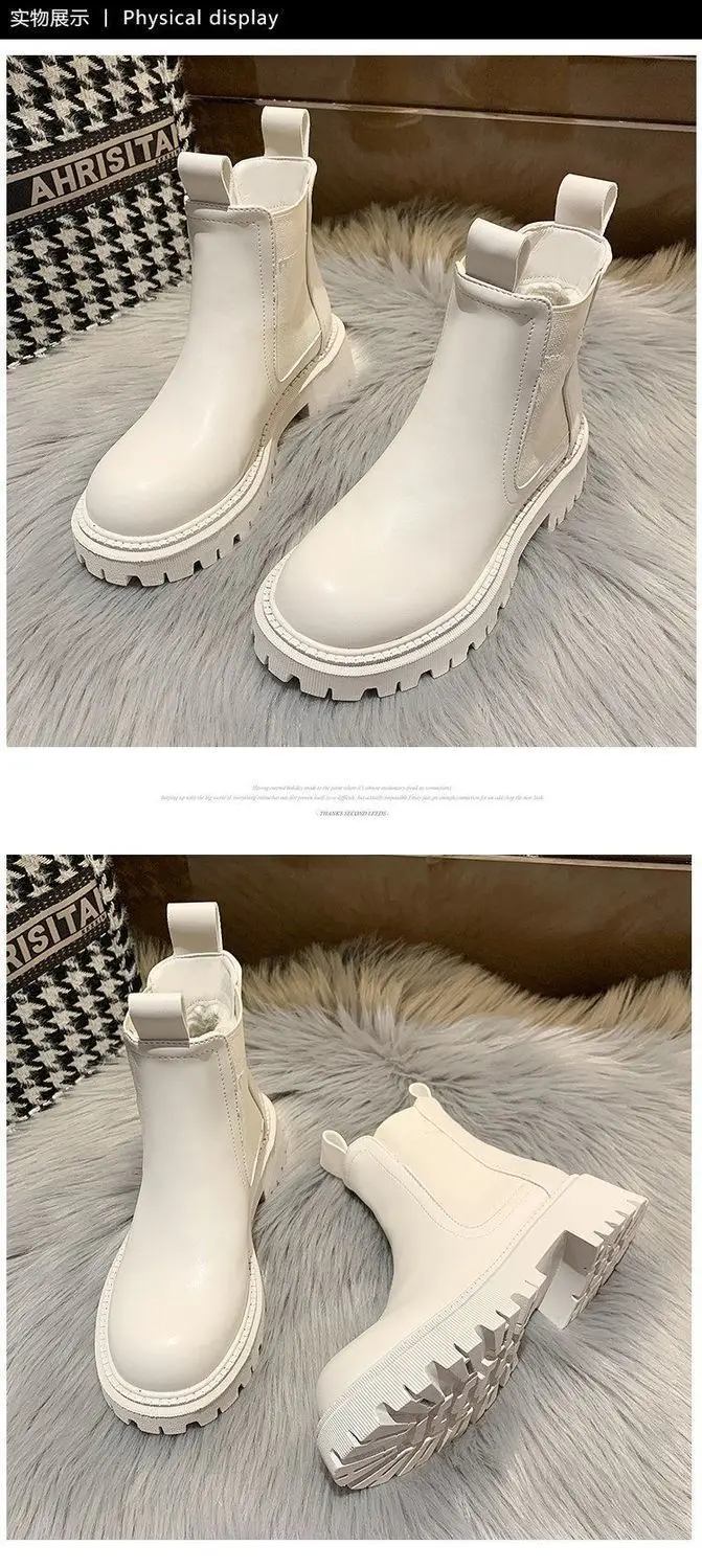 Женские ботинки челси на платформе, белые полусапожки на меху, коро...