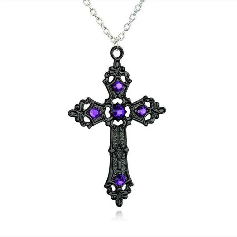 Большое ожерелье в стиле барокко с христианскими крестиками черного цвета с кристаллами, готическое распятие и пасхальные украшения, унисекс распятие с бижутерией