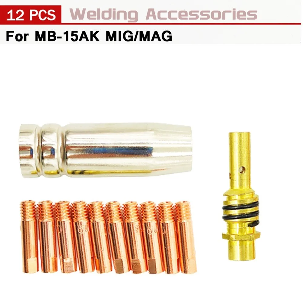 12 шт. проводящее сопло 0,6 0,9 1,0 1,2 мм MB-15AK MIG/MAG M6 сварочный Фонарь держатель для контактных наконечников набор запчастей для газовых соплов