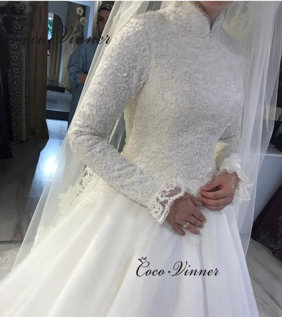 Свадебное платье принцессы, скромное, кружевное, арабское, мусульма...