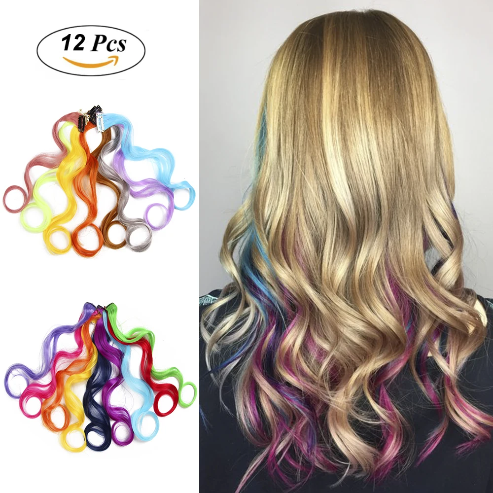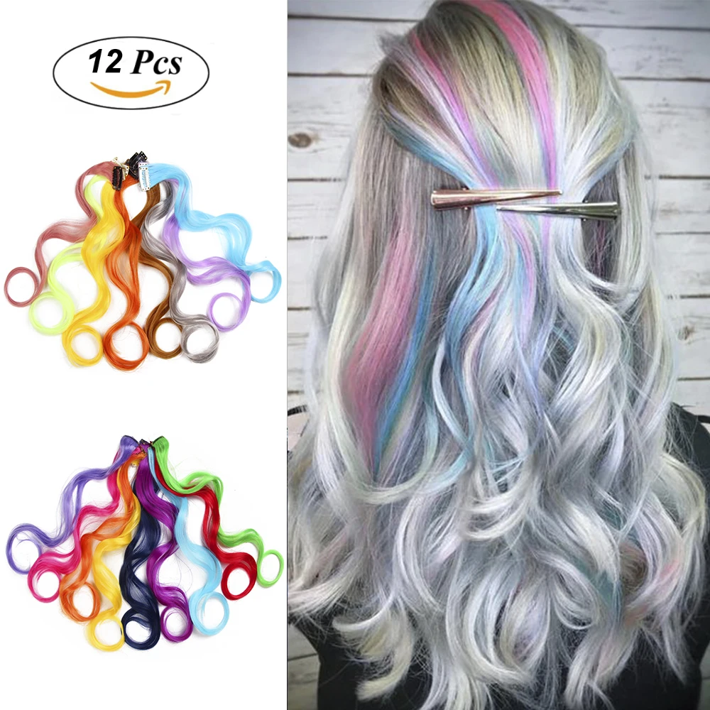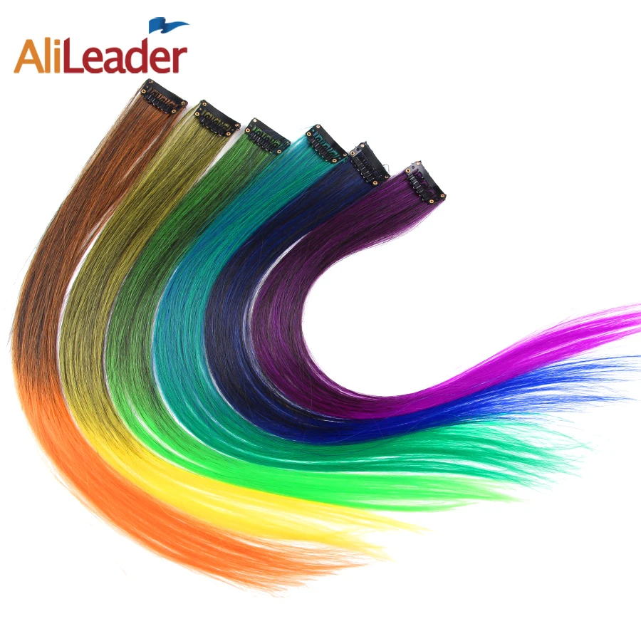Радужные синтетические удлинители волос, 57 цветов, прямые, вьющиеся, радужные, красивые заколки для волос с эффектом омбре, 20 дюймов
