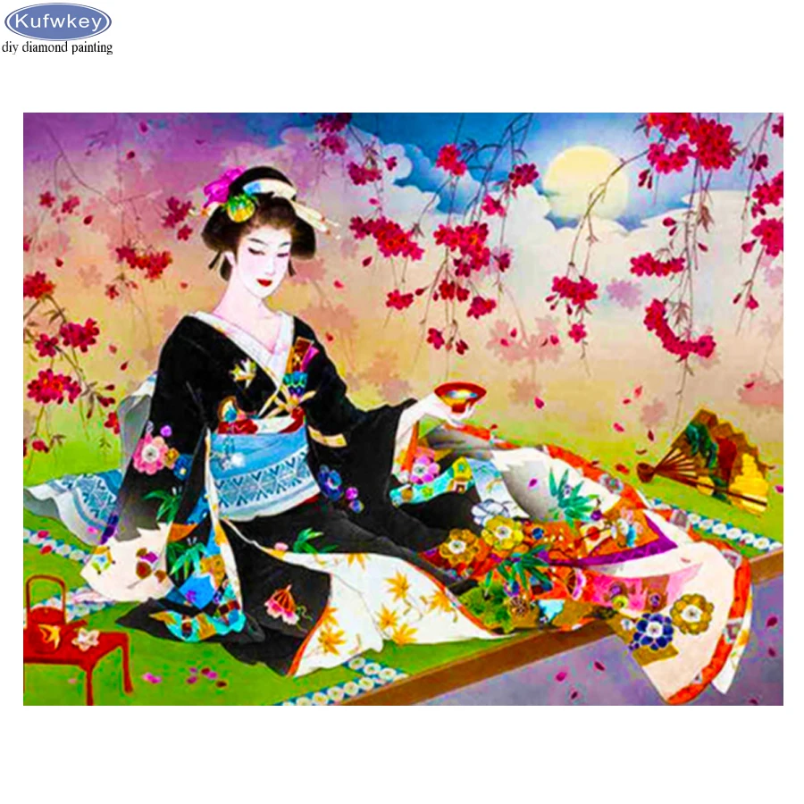 Алмазная 5D картина сделай сам, мозаика, японская красивая картина, полная выкладка, квадратная Алмазная вышивка гейши, наборы для вышивки крестиком, наклейка