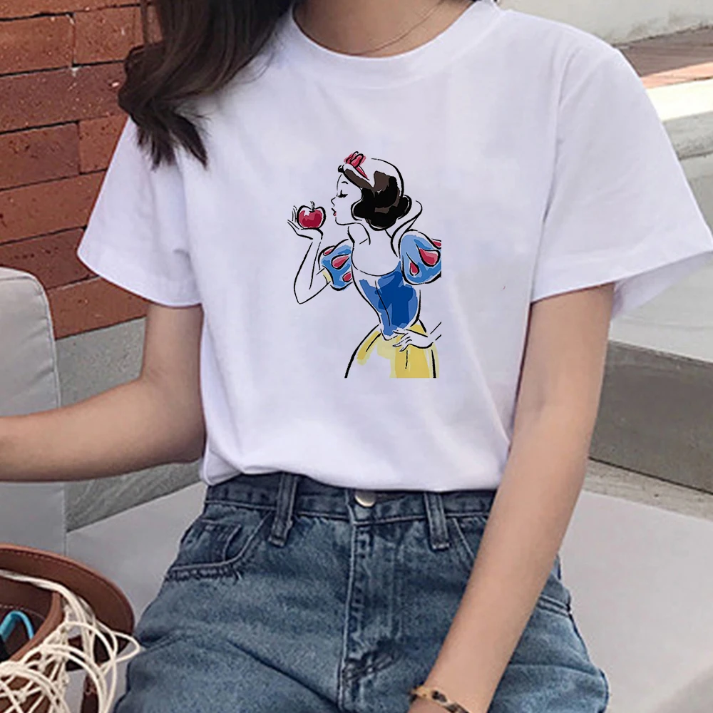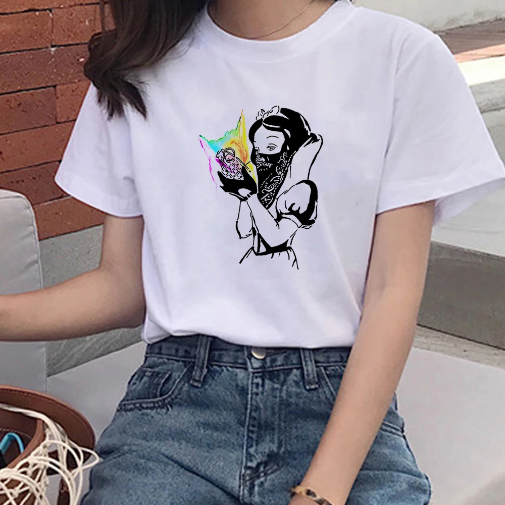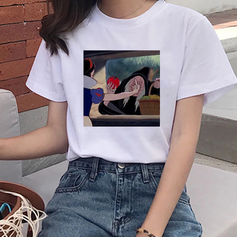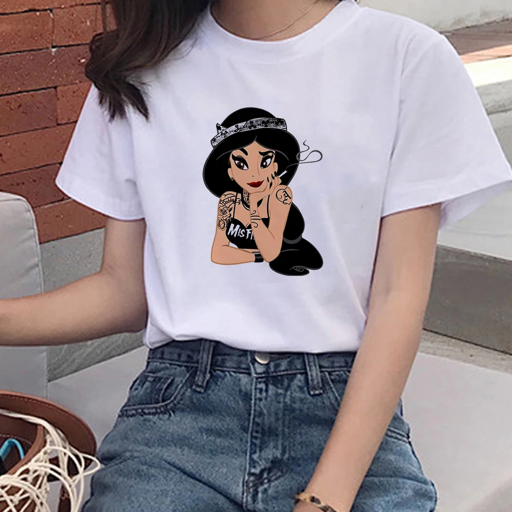 Футболка женская повседневная с коротким рукавом, Минималистичная модная, с мультяшным принтом Диснея принцессы Divas of Dark