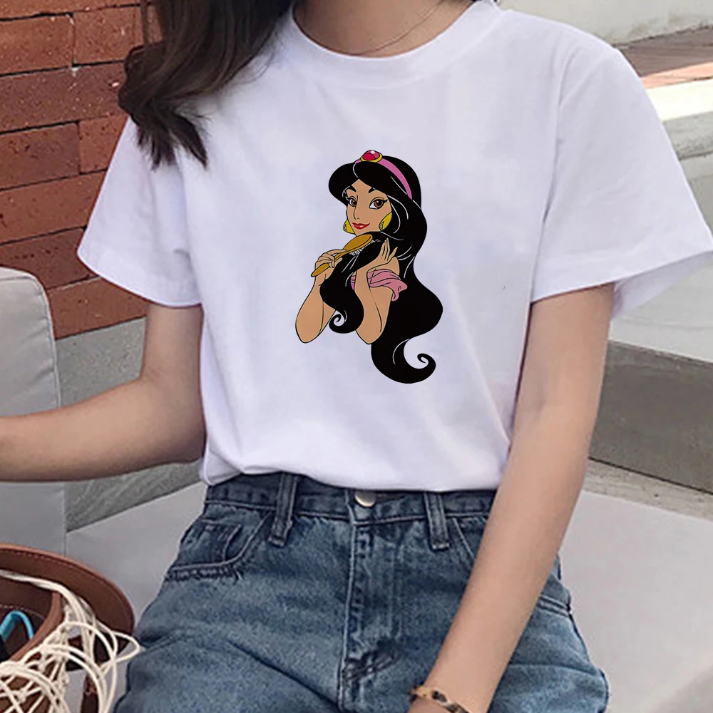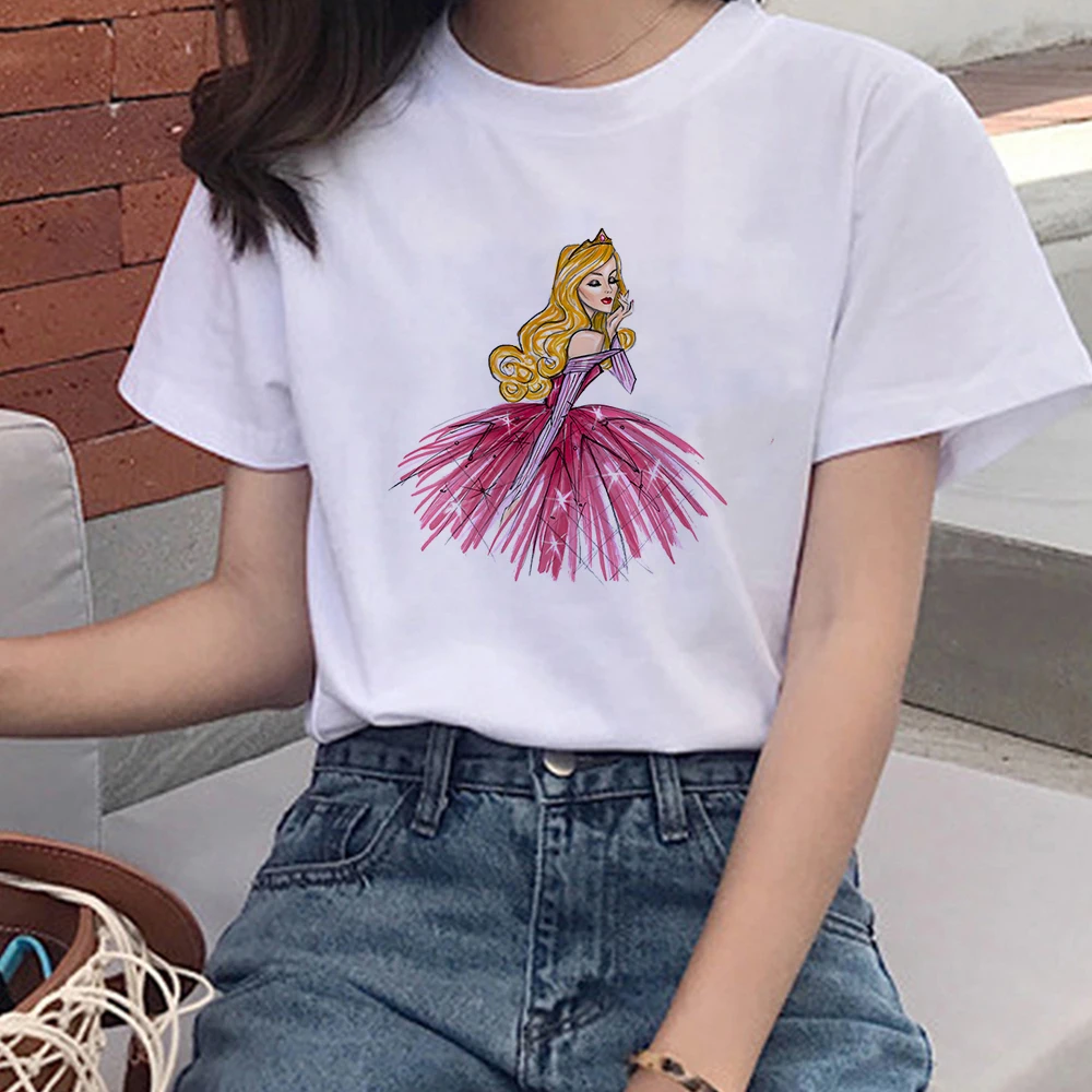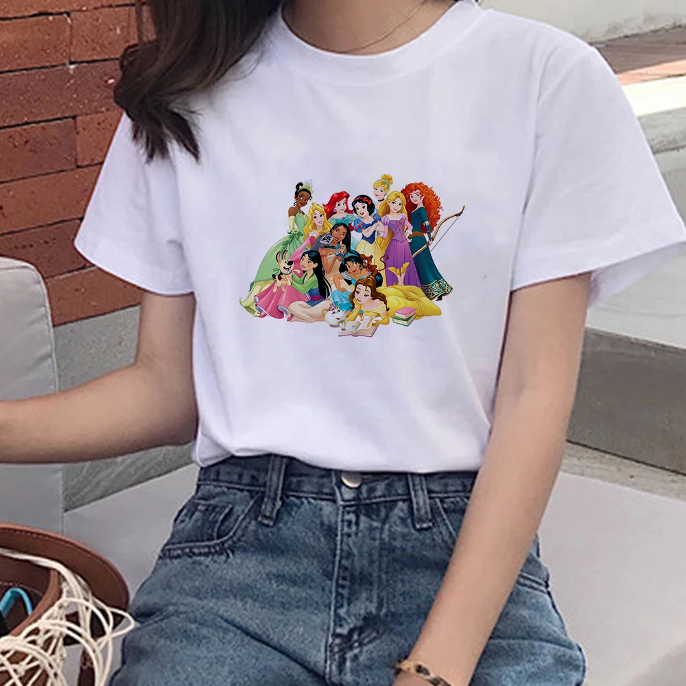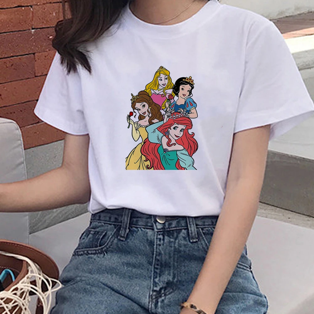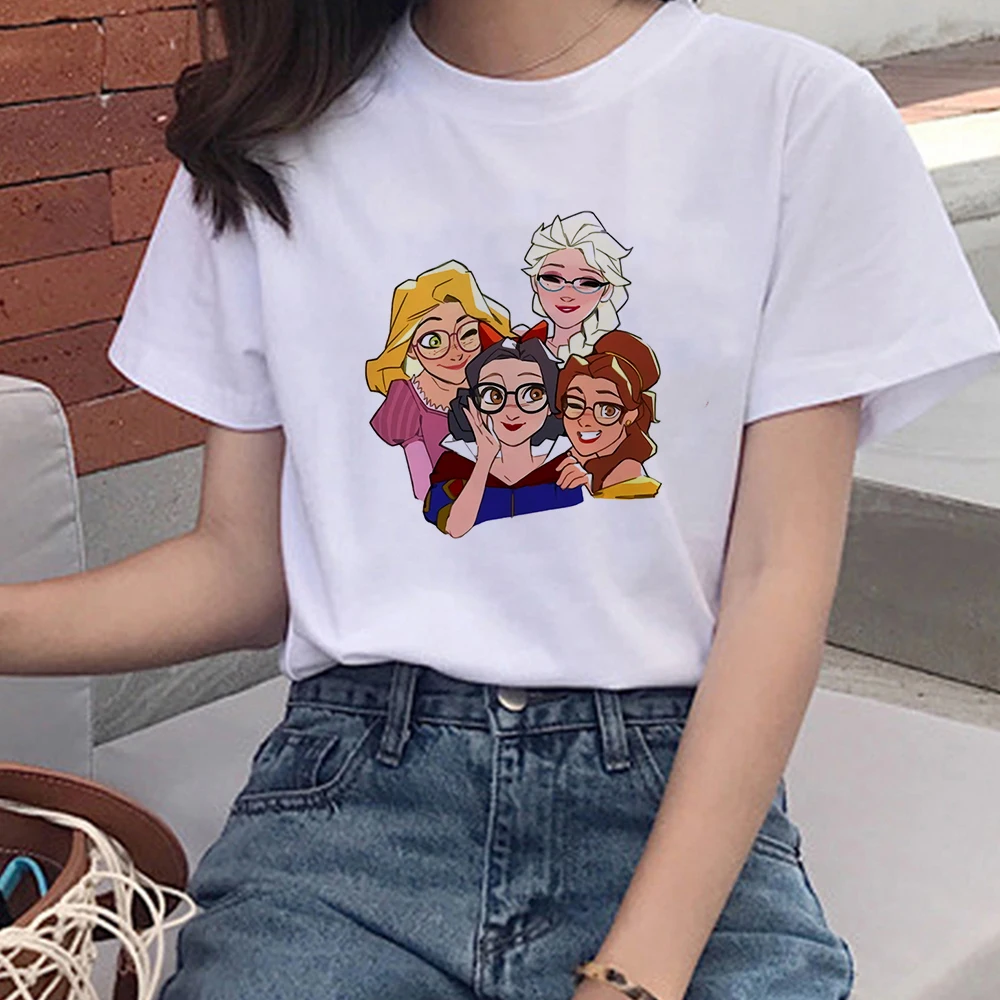 Футболка женская повседневная с коротким рукавом, Минималистичная модная, с мультяшным принтом Диснея принцессы Divas of Dark