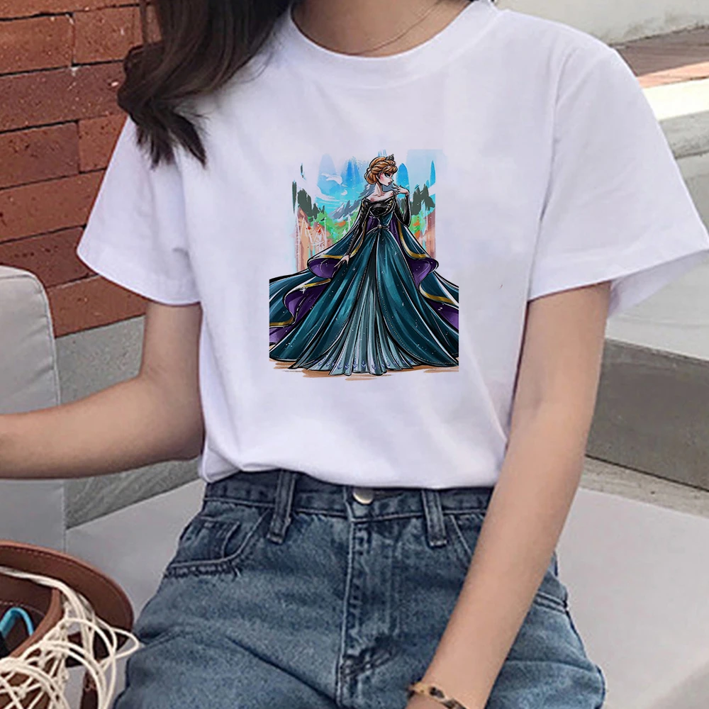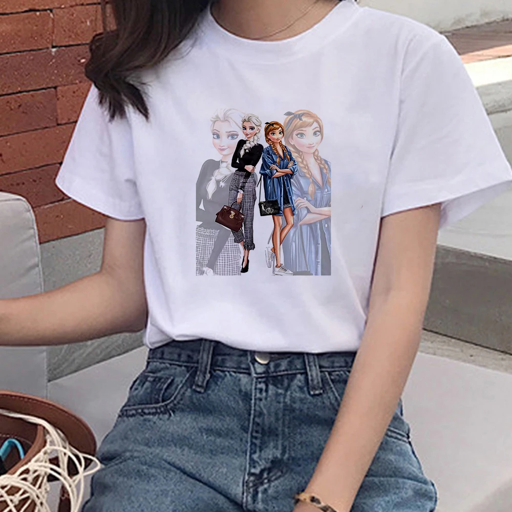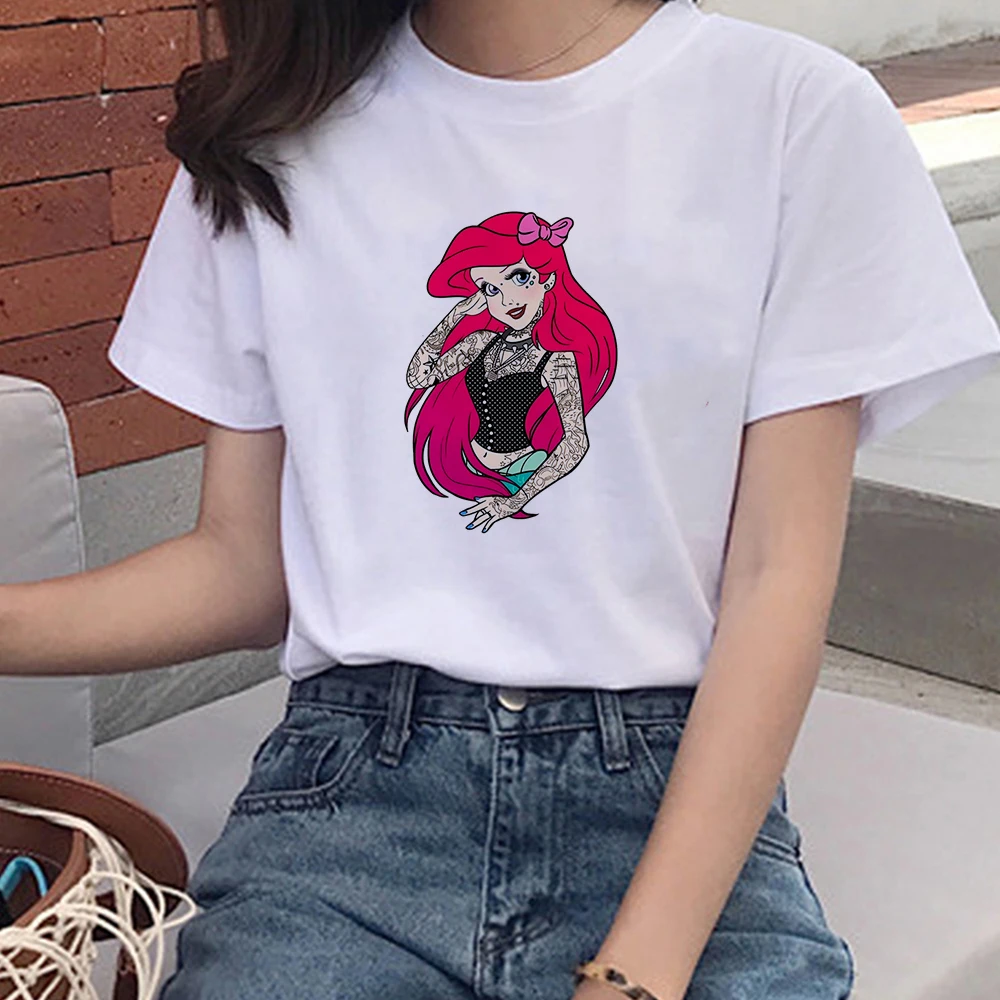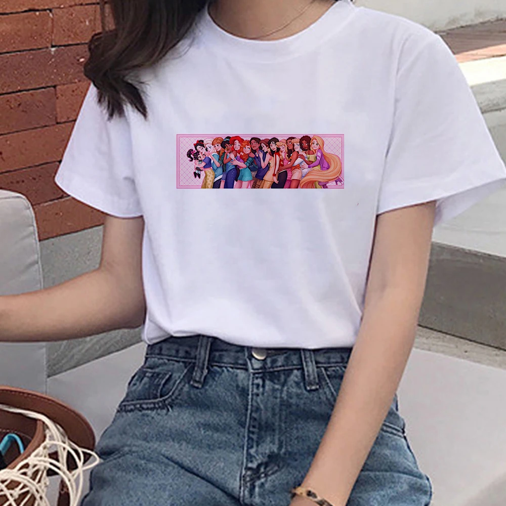Футболка женская повседневная с коротким рукавом, Минималистичная модная, с мультяшным принтом Диснея принцессы Divas of Dark