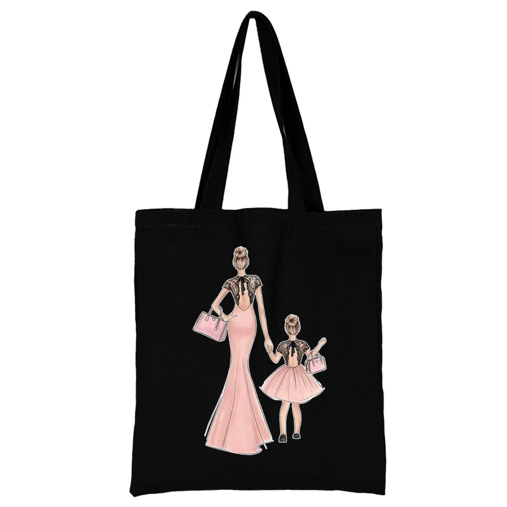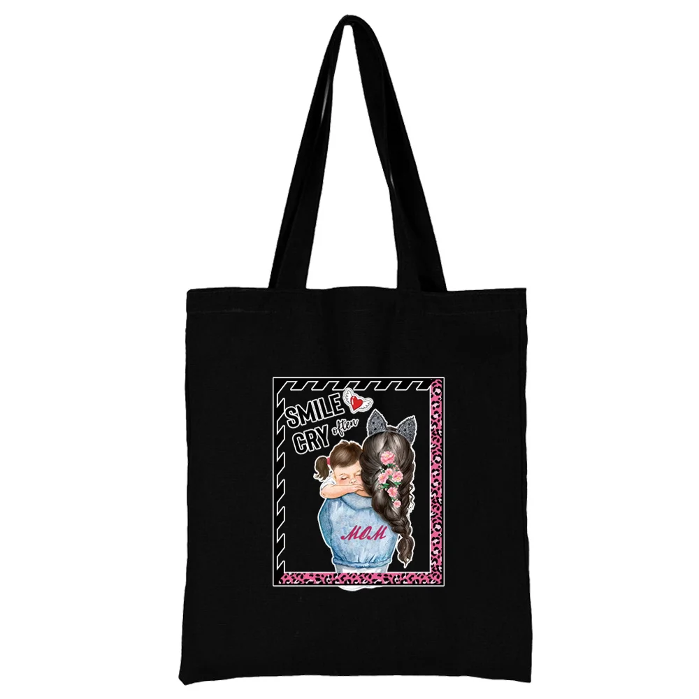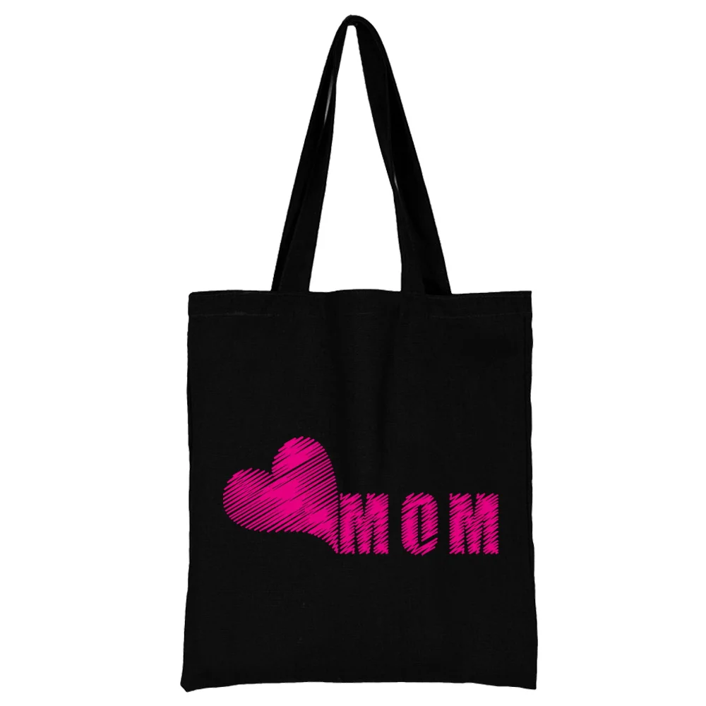 Повседневная женская сумка для покупок, многоразовый холщовый саквояж большой вместимости для всей семьи, с принтом мам, Студенческая Сумочка на плечо, черный цвет