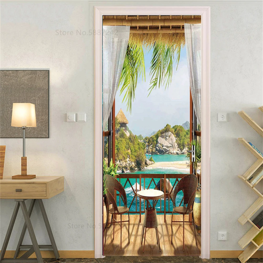 Море пляж декоративные наклейки на дверь для спальни вход для мальчиков и девочек 3d обои природные пейзажи самоклеющиеся настенные наклейки для дома