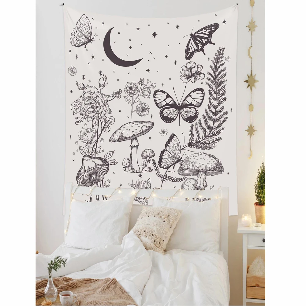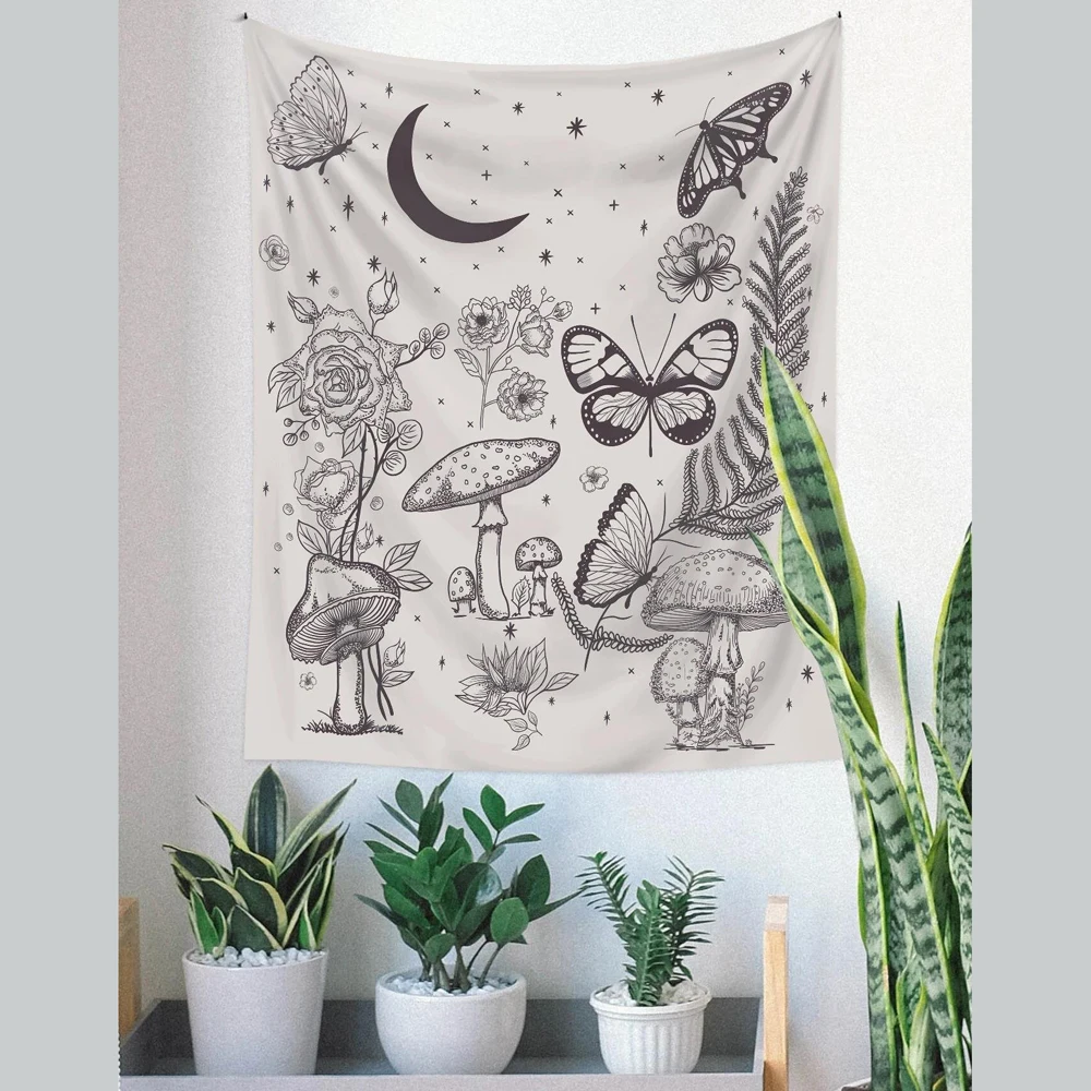 Психоделическая Луна Бабочка Искусство Фэнтези хиппи искусство Гобелен Мандала богемная семейная фотография