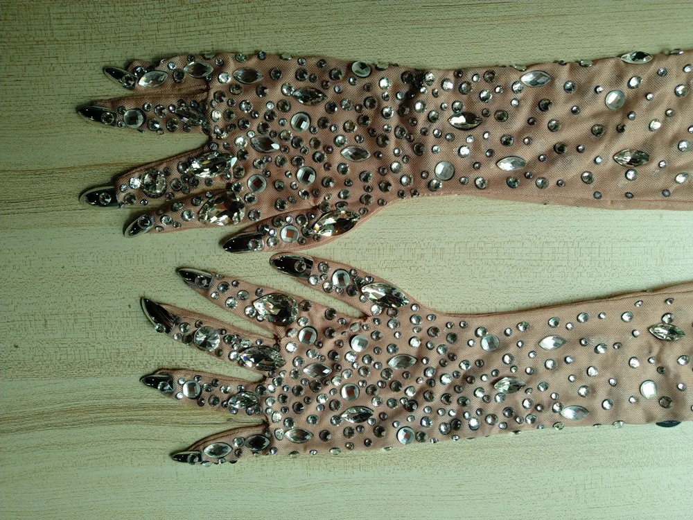 Модные эластичные Стразы перчатки женские блестящие прозрачные сетчатые длинные перчатки для ночного клуба танцор певицы сценические аксессуары