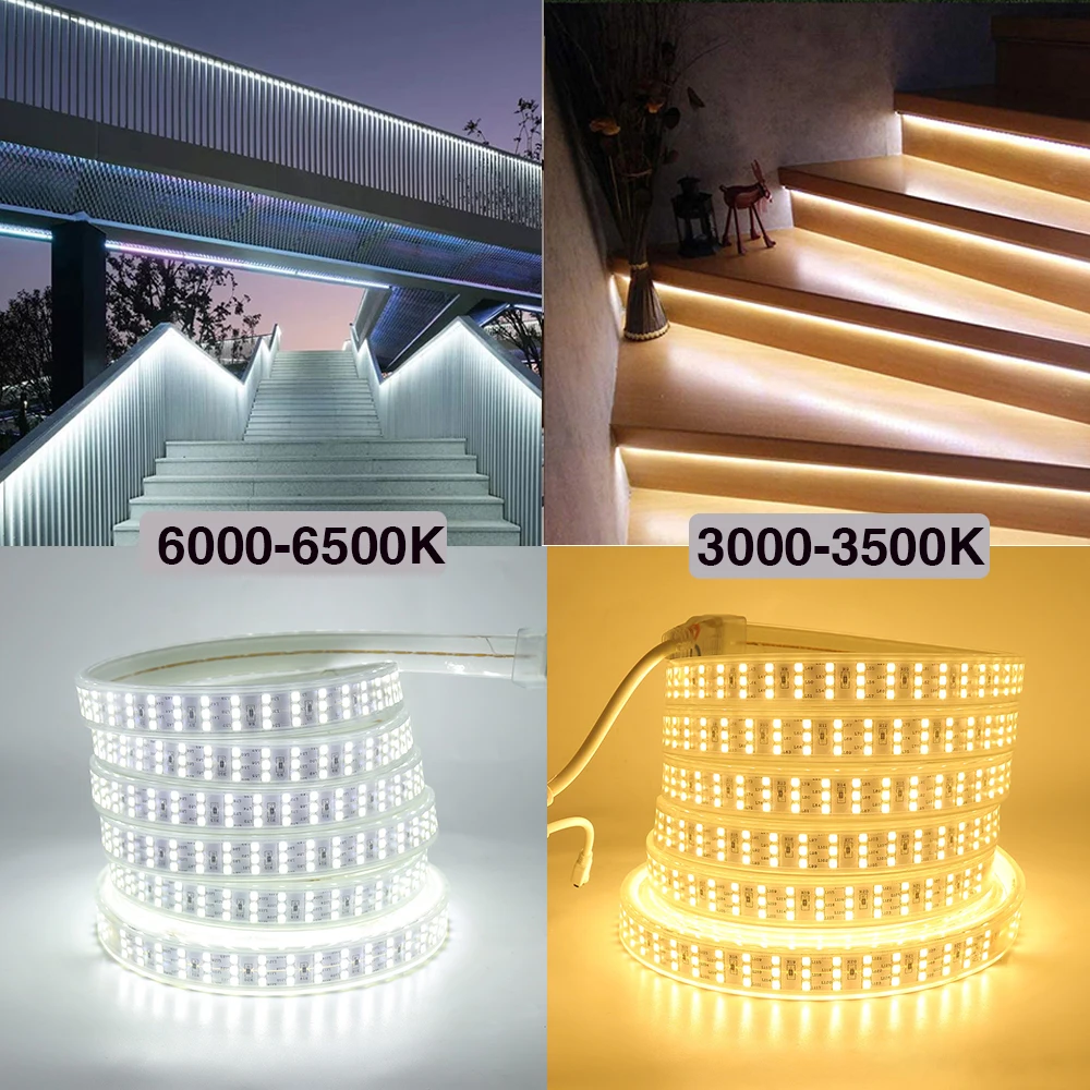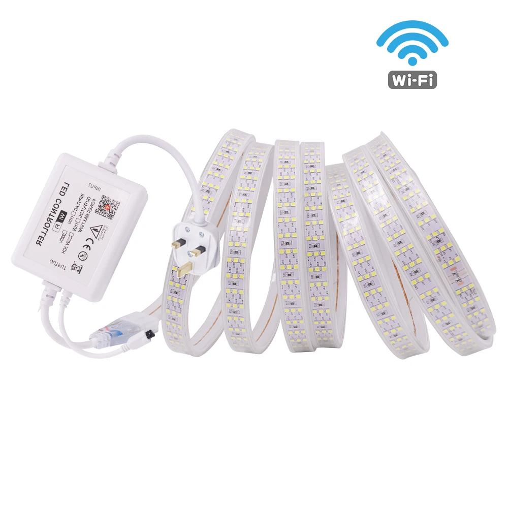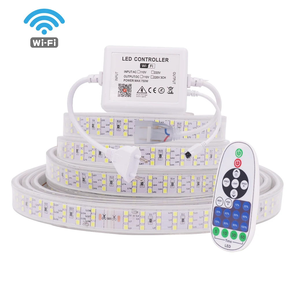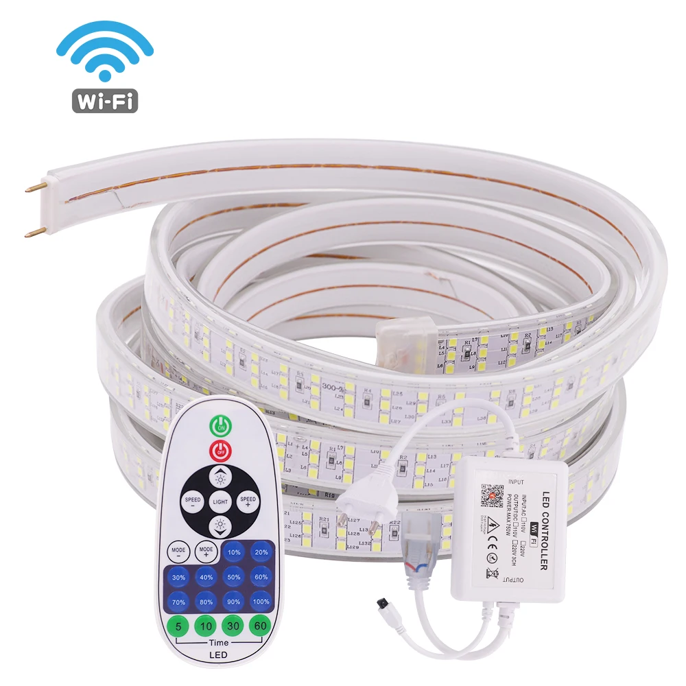 Светодиодная лента 220 В с Wi-Fi, 276 светодиодовм, 2835, три ряда, IP67, водонепроницаемая гибкая лента с пультом дистанционного управления для украшения дома