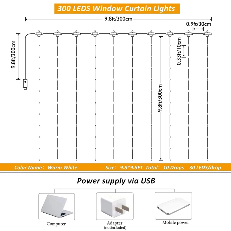 Страна: UA Emitting Color: Warm White Wattage: With Hooks Ships From: China Style: 3Mx3M 300LED Доставка: SF eParcel 29.12.2021