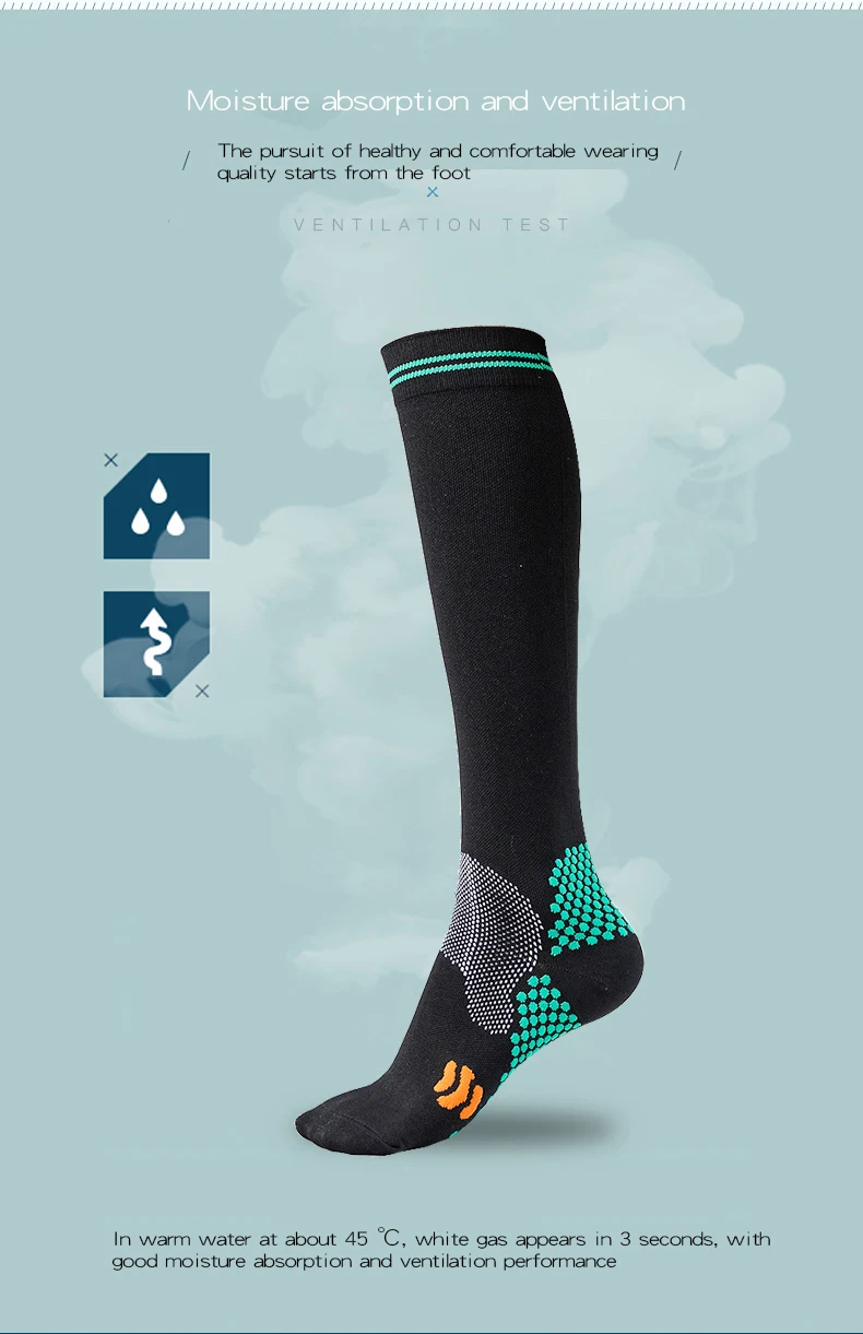 Какой уровень выбрать?Первый уровень (20-30 мм рт. Ст.): подходит для профилактики здоровья у людей. Например, учители, сотрудники ГИБДД, медсестры, доктора, косметологи, торговые гиды и т. д., и эти носки также подходят для ранних симптомов, таких как венозные сосуды с небольшой нижней конечностью, стоя слишком долго, ощущая болезненностьУровень 2 (30-40 мм рт. Ст.): для тех, кто имеет очевидные признаки в нижних конечностях и сопровождается дискомфортом ног (например, боль в конечностях, усталость, отеки и экземы, судороги, покалывание, пигментация, И т. Д.), флебит, беременность, после эксцизии вены, и синдром тромбоза глубоких вен.Уровень 3 (40-50 мм рт. Ст.): подходит для людей с высокими отеками, затемненной кожей и необратимыми лимфемами.Почему все больше и больше людей любят носить компрессионные носки сейчас?Независимо от того, являетесь ли вы спортсменом, который хочет преуспеть в игре, который сидит долгое время во время путешествий или на работе, или кто-то, кто борется с болью из-за хронического состояния, поддержка правильного кровотока на ноги имеет первостепенное значение. Наши компрессионные носки разработаны с новейшей технологией сжатия от свода до икры, Обеспечивает поддержку голени и мышц ног, помогает сохранить приток крови, чтобы повысить атлетические показатели и облегчить боль из-за ряда условий.Снижает риск травмОбеспечивает дополнительную компрессионную поддержку для стабилизации свода, лодыжки и мышц. Минимизирует колебания мышц и micro-tearing.Prevents спазмов и травм. Усиленная поддержка может предотвратить травмы из-за плохой силы мышц, особенно во второй половине марафона.Улучшает вашу производительностьДля спортсменов на выносливость ключевым механизмом является «икроночный мышечный насос»-с каждым шагом или педальным ударом, сжимающий и разжимающий телячьи мышцы сдавливает кровь обратно к сердцу. Наши компрессионные носки обеспечивают дополнительное сжатие, которое усиливает это действие накачки, ускоряя поток очень необходимого кислорода для работы мышц. Ускоряет кровообращение к сердцу и избавляет от метаболических отходов от мышц.Помогает быстрее восстановитьсяСтимулирует кровоток и улучшает доставку кислорода в ваши мышцы. Уменьшает выработку молочной кислоты, мышечную болезненность и чувство тяжеловесности в ногах и ногах. Более быстрое восстановление от «задержки начала мышечной болезненности».Помогает предотвратить или снять отекиПомогает контролировать отек через улучшенную циркуляцию и ускоряет удаление клеточных отходов. Уменьшает отеки и усталость от длительного сидения или стоя. Идеально подходит для беременных женщин и тех, кто сидит или стоит в течение длительного периода во время путешествий или на работе.Помогает облегчить боль в подошвенном фасциитеРазработан с компрессией, чтобы помочь в управлении болью и облегчении от подошвенного фасцита, пятки шпоры и боли в суставах. Помогает при стоянии и ходьбе. Сжатие связок уменьшит воспаление, ускоряя процесс заживления.Которые могут извлечь выгоду из компрессионных носков:1. Беременная женщина2. Спортсмены и активные люди занимаются спортом, бегом, пешим туризмом, велоспортом, футболом и т. д.3. Частые путешественников или тех, кто летает на длинном самолете4, рабочие места, которые требуют от вас быть на ногах много: медсестры, учи