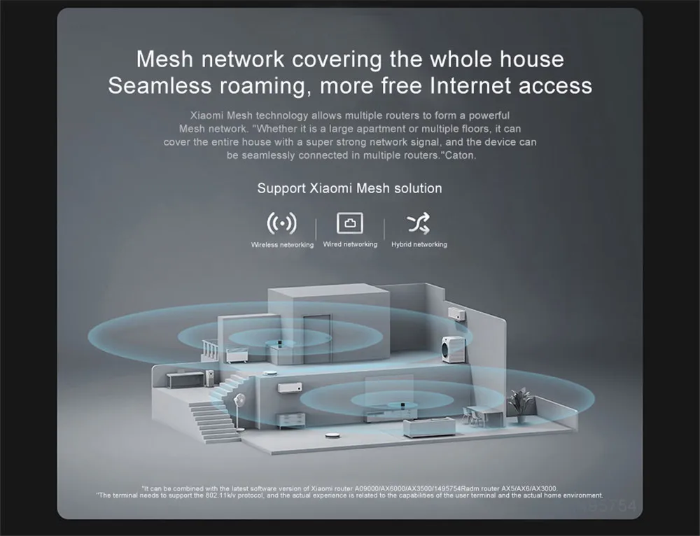 Бесшовный роуминг и более бесплатный доступ в Интернет. Технология Xiaomi Mesh позволяет нескольким маршрутизаторам создавать мощную сетевую сеть. Будь то большая квартира или несколько этажей выше и ниже, она может покрыть весь дом сверхмощными сетевыми сигналами.