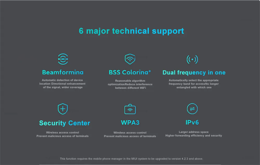 Оба 2,4 ГГц и 5 ГГц полосы частот оснащены независимый усилитель сигнала (PA + LNA), сила сигнала увеличивается на 4dB и теоретический охват прочность увеличивается на 50%.
