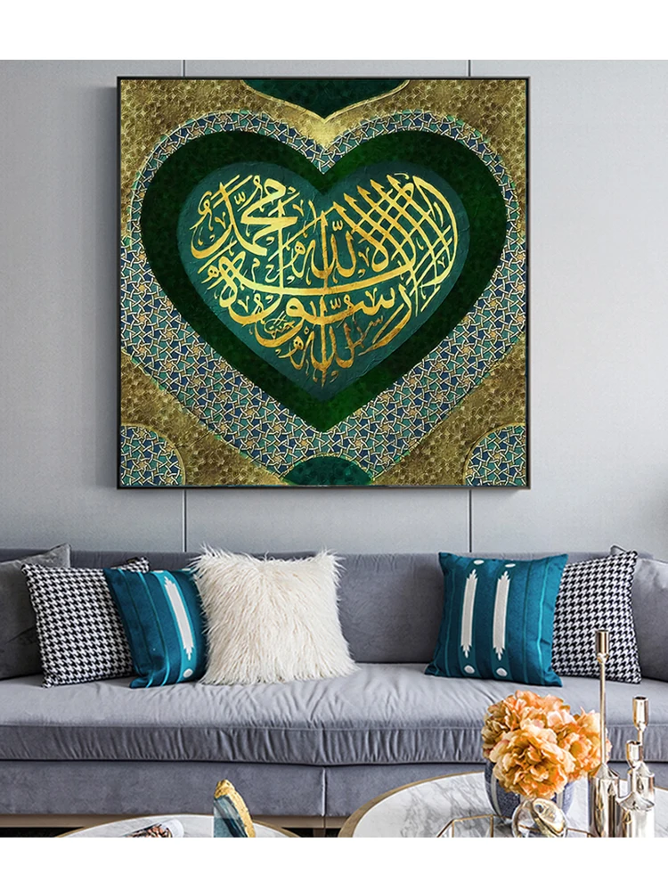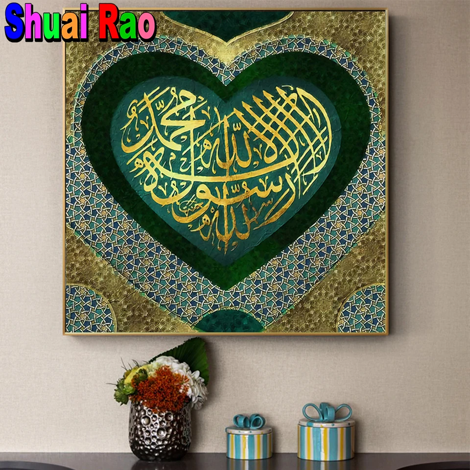 Мусульманская зеленая Настенная картина в форме сердца, полноразмерная, квадратная, круглая, картина стразы, мозаичная, алмазная вышивка, арабский Подарок