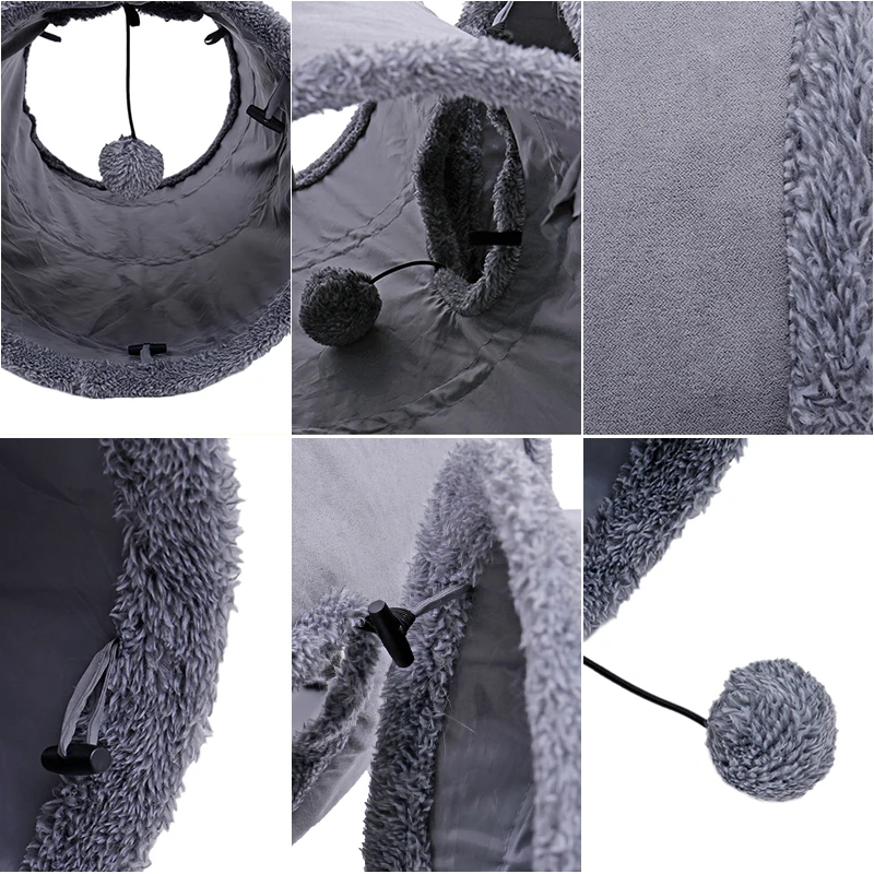 Серая игрушка для кошек, складной туннель для пересечения животных, длинное гнездо, экологически чистая развивающая игрушка для домашних животных, круглая замшевая дышащая Лежанка для кошек