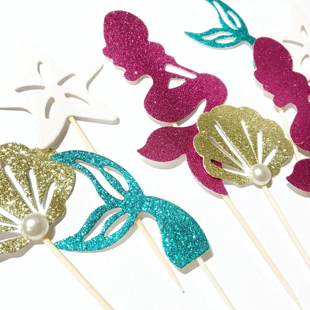 1 упаковка, хвост русалки, морская звезда, ракушка, торты, обертки для пирожных, для девочек, для дня рождения, украшения торта, детский Декор для вечеринки русалкиМатериал: пластик