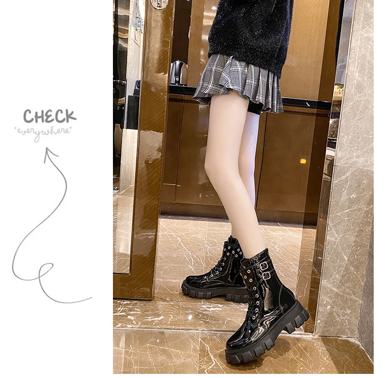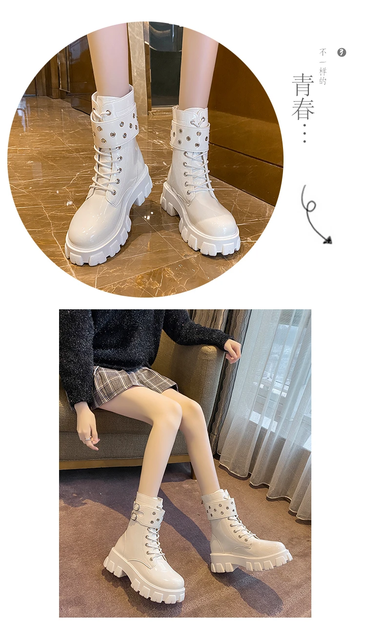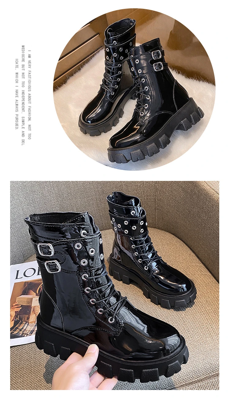 Платформа Лакированная кожа сапоги новые заклепки женские осенние м...