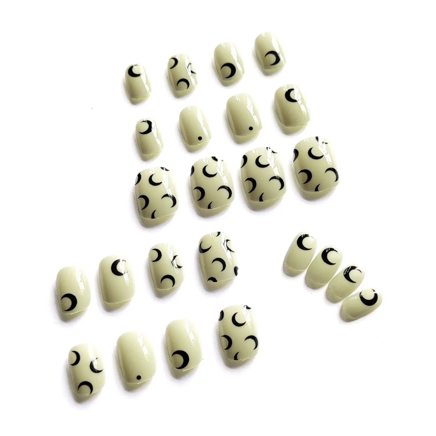 24 шт.кор. французские короткие накладные ногти с лунным дизайном, ...