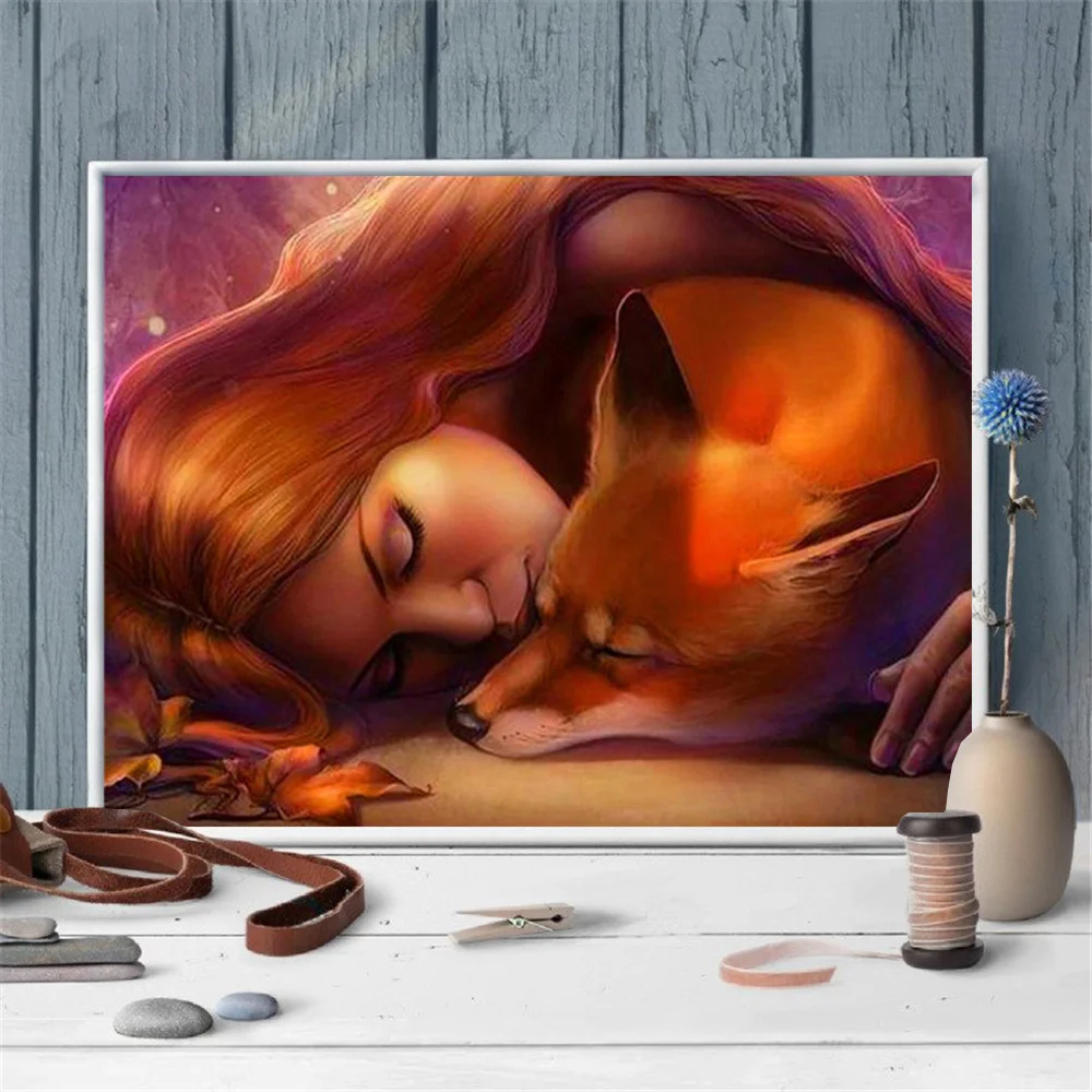 Алмазная 5D мозаика HUACAN с портретом женщины лисы, животное, полная вышивка, наборы для вышивки крестиком, ручная работа