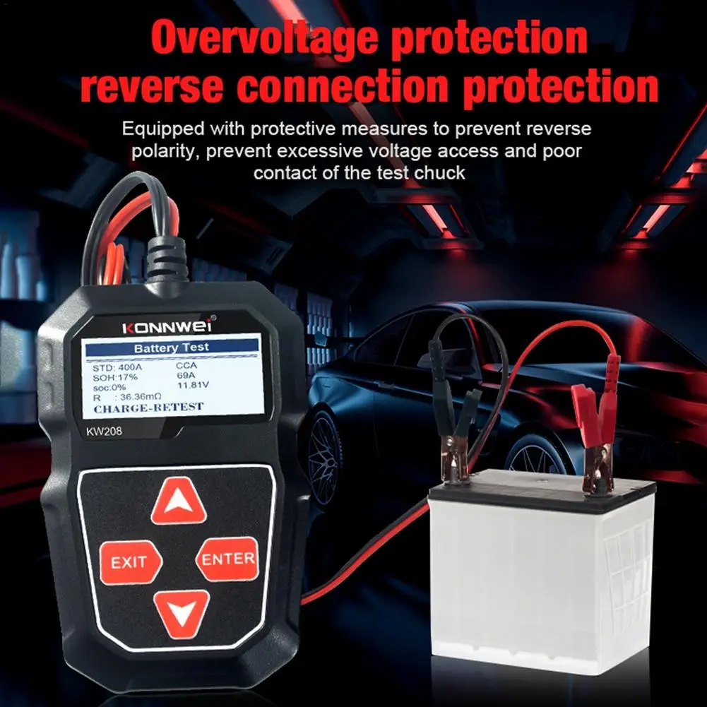 Тестер автомобильных аккумуляторов KW208, 8 языков, 12 В, защита от...