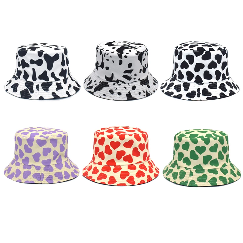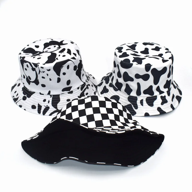 Панама хлопковая с коровьим принтом для мужчин и женщин, Корейская популярная Панама, двусторонняя, летняя, белого и черного цвета